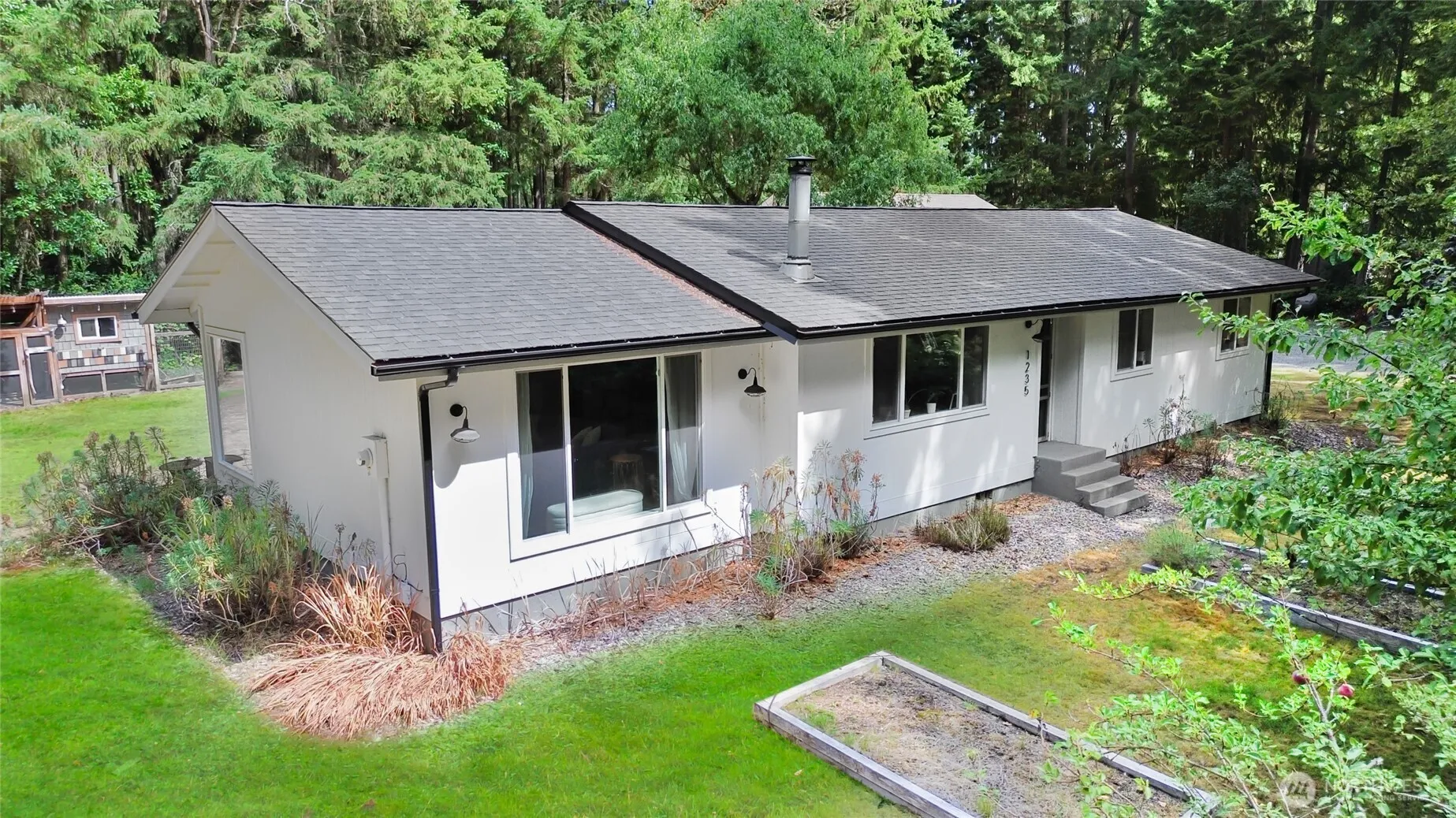 Discover the charm of island living in this Fox Island home set on a flat, usable lot with room to spread out and enjoy the outdoors. The property boasts a large 1,200 sq. ft. fully insulated +30 amp outlet garage/shop- ideal for projects, storage, or hobbies. Established gardens, fruit trees, a chicken coop, and a play set for a true homestead feel. Inside, the home offers comfortable living with light-filled spaces and a layout designed for everyday convenience. Wood grains, copper touches, concrete counters, driftwood chandelier, pellet stove to bring in natures elements. You’ll enjoy both privacy and easy access to Gig Harbor amenities. A unique opportunity to enjoy space, functionality, and the Fox Island lifestyle.