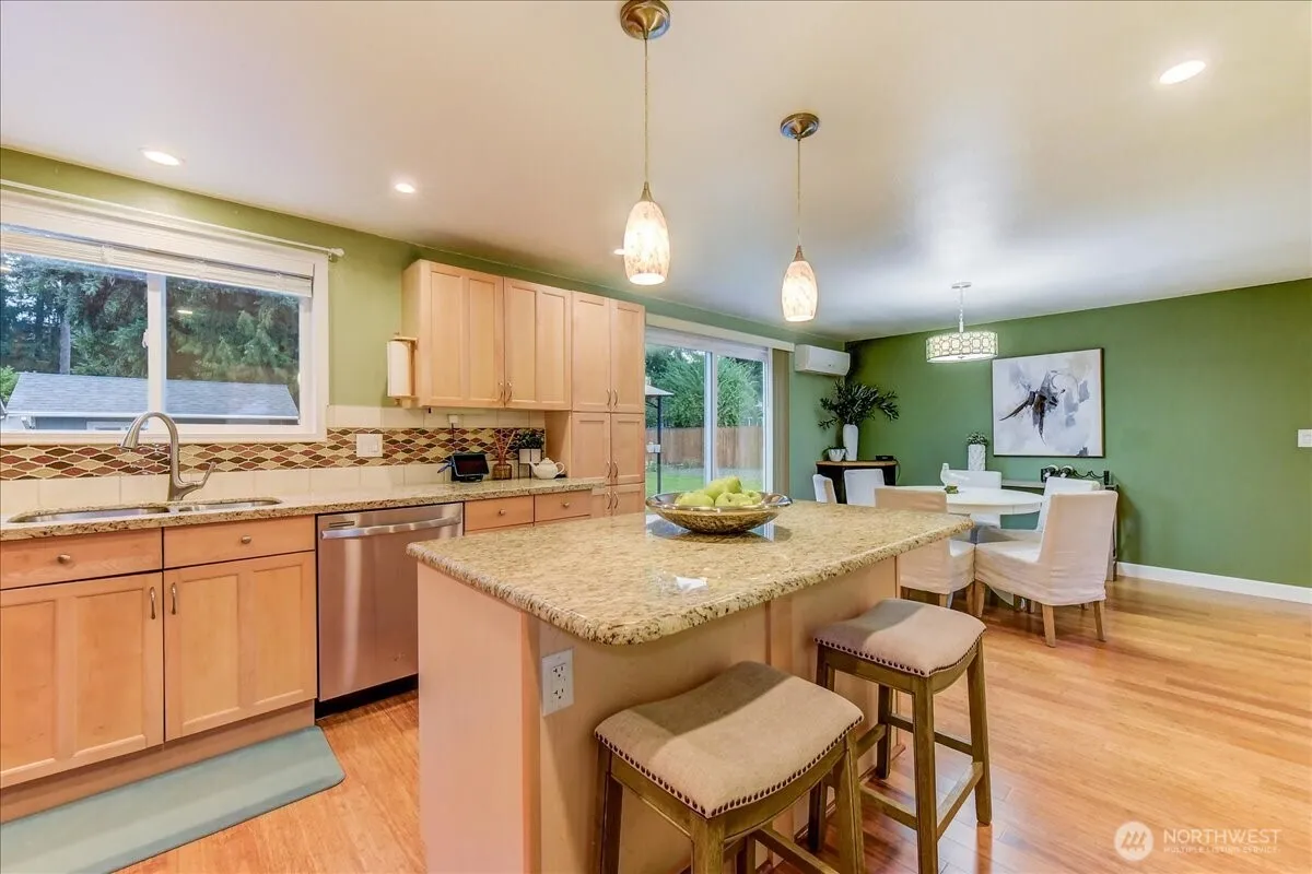 Beautifully updated 1-level home with 3 bedrooms, 2 baths, and a versatile den. Enjoy comfort year-round with a Lennox heat pump and AC, plus enjoy cozy evenings by the electric fireplace. The Lrg fully fenced yard includes professional landscaping, garden area and a above-ground sprinkler system. Entertain easily with your 400 Sq. ft. Timber Tech Deck, including a barbecue patio with electrical hookup. Enjoy a 10’x14′ shed with electrical (use your imagination).Tinker in the custom 50’x12′ garage with 30A Subpanel W/20A outlets. Walk to May Creek Park trails and Waterline Trail to Lake Boren Park for outdoor fun. Conveniently located near shopping, dining, and freeway access for easy commutes. Hardiplank siding.