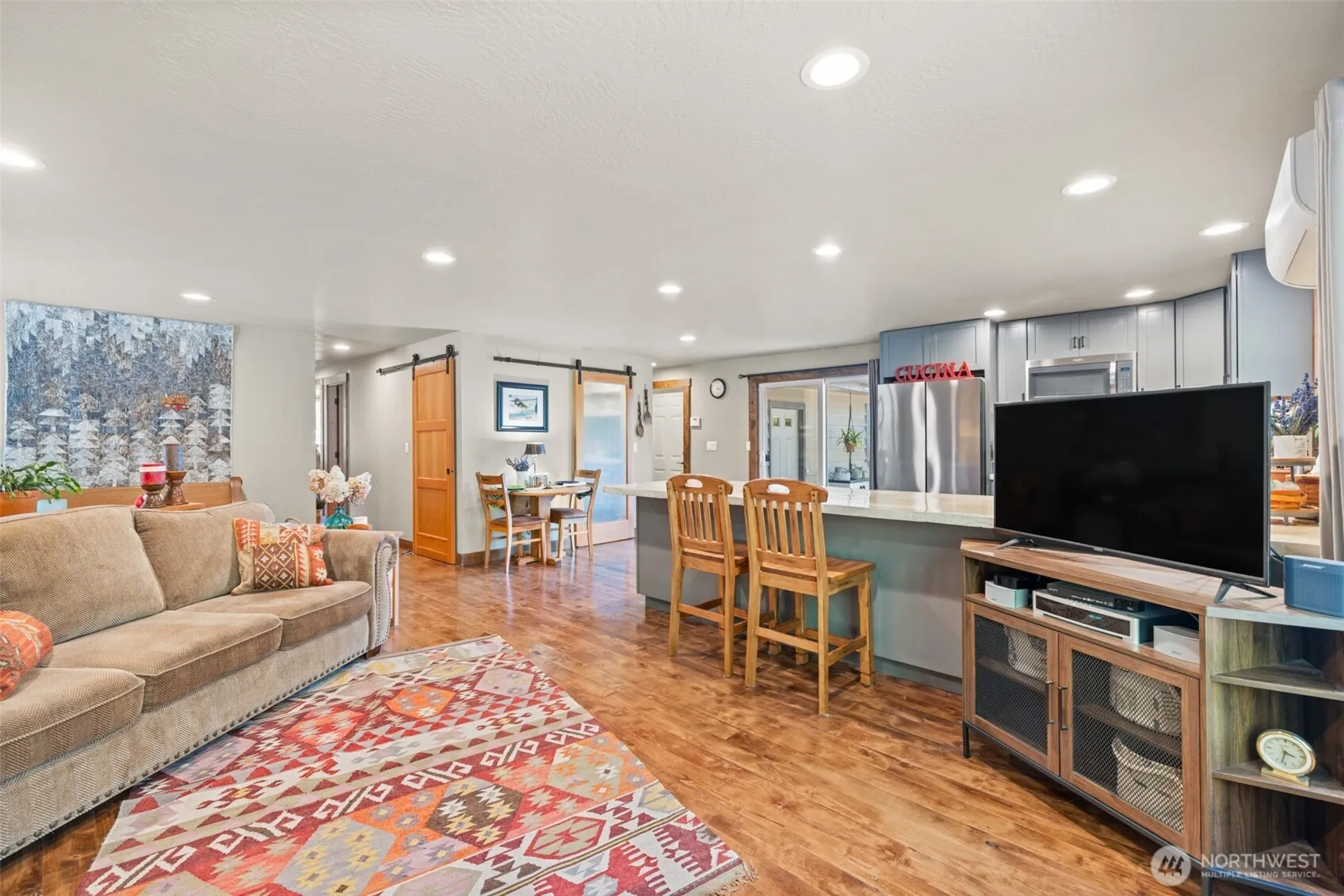 This 2.68 acre property is in a highly desired area, private but only 1.5 miles from town. The house was completely remodeled in 2016. The kitchen has a poured concrete countertop and soft-close cabinets. There are sliding barn doors on the coat closet and pantry. A closet wall was opened between the two bedrooms for crafting purposes and can easily be replaced, making it into a three bedroom home. Both bathrooms have solar tubes and concrete floors. The heated garage has storage cabinets, lighting and two work spaces. Canada can be seen from the 20 X 30 deck. The front of the house faces the Olympic mountains. Cherry tree, raspberries, rhubarb, herbs, peonies and lavender make this a beautiful place to garden and live.