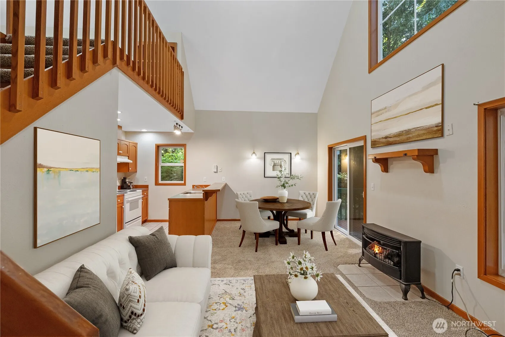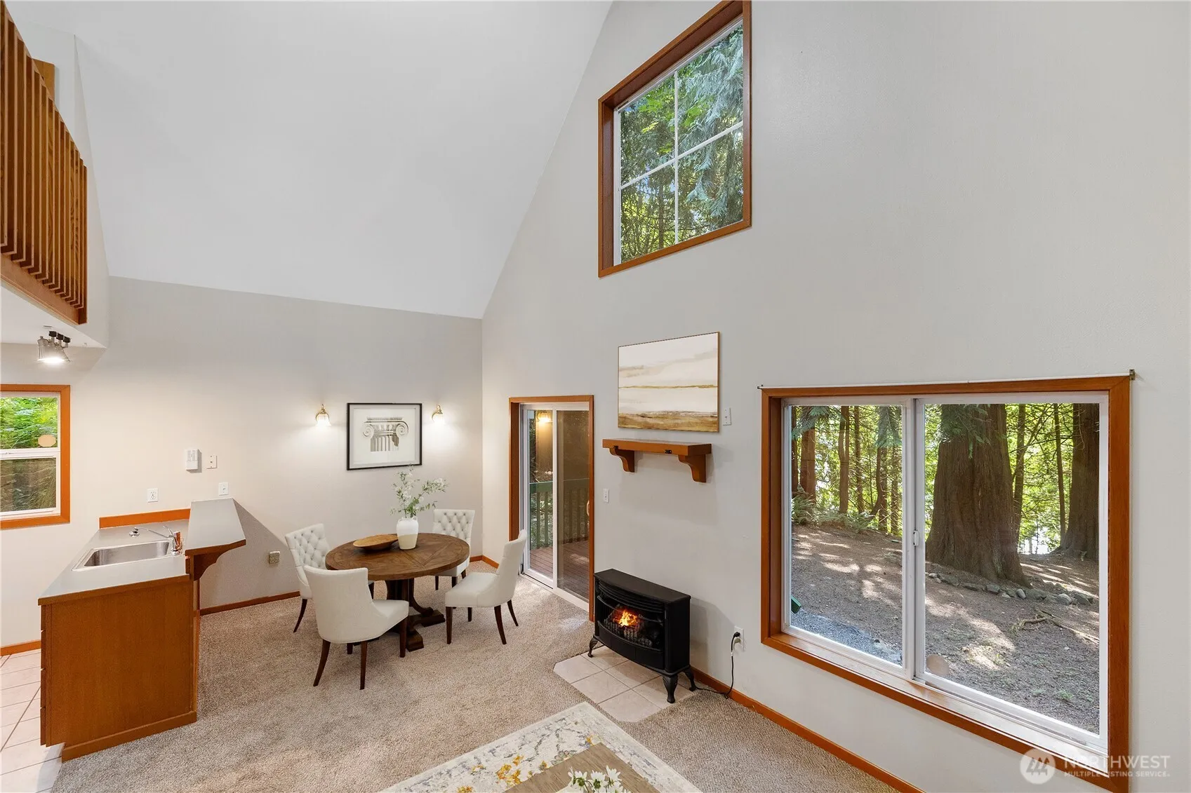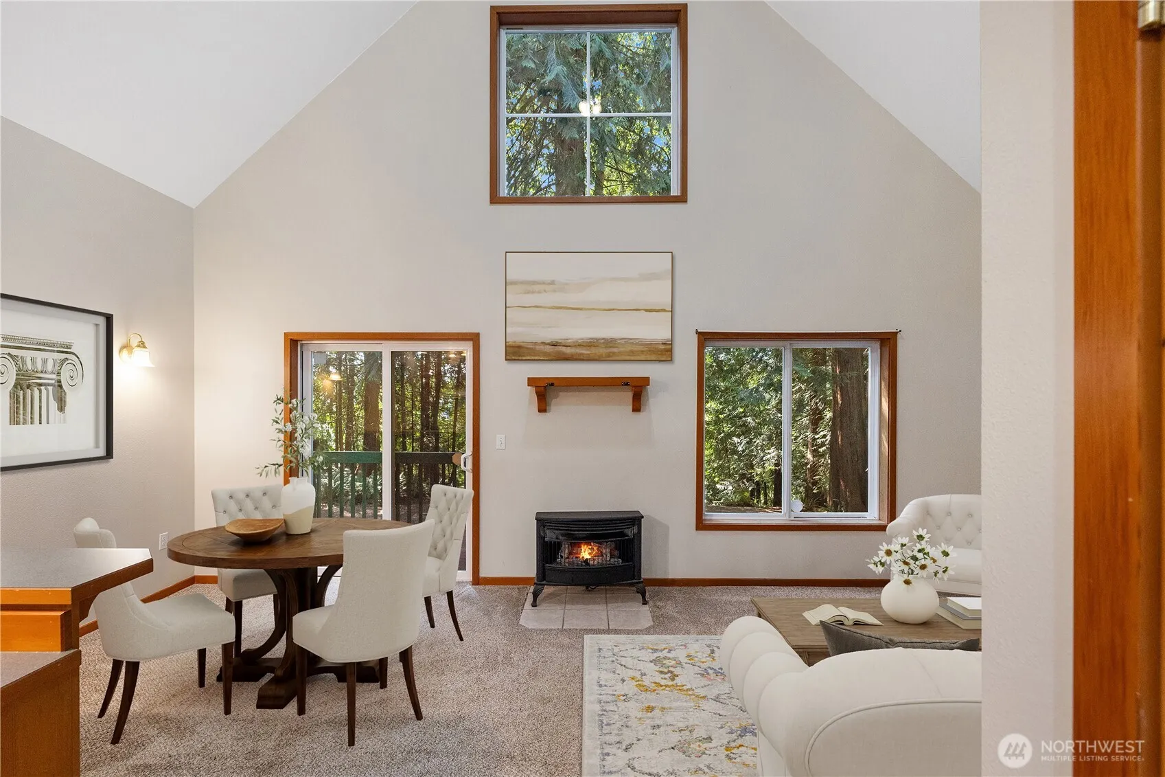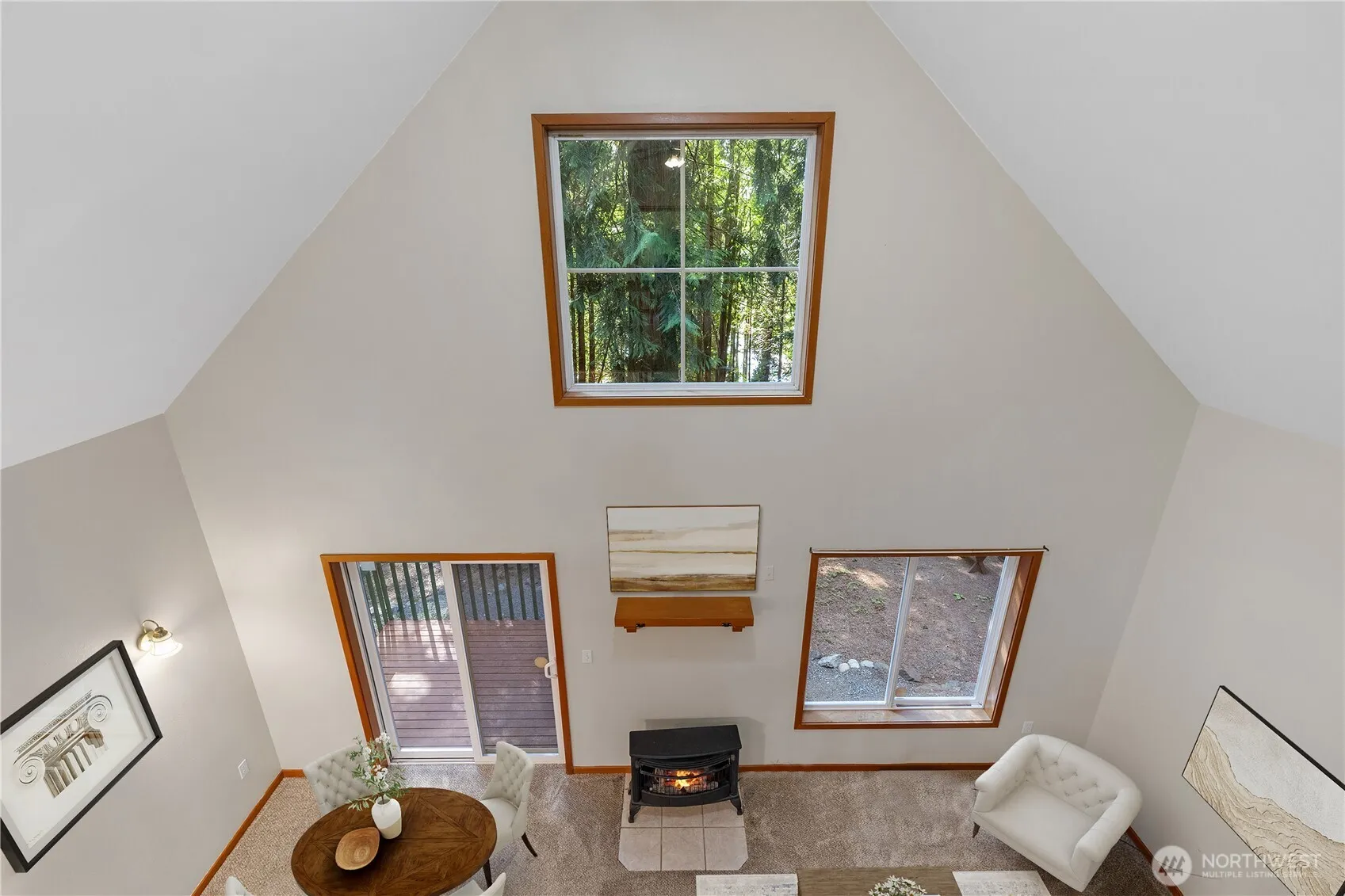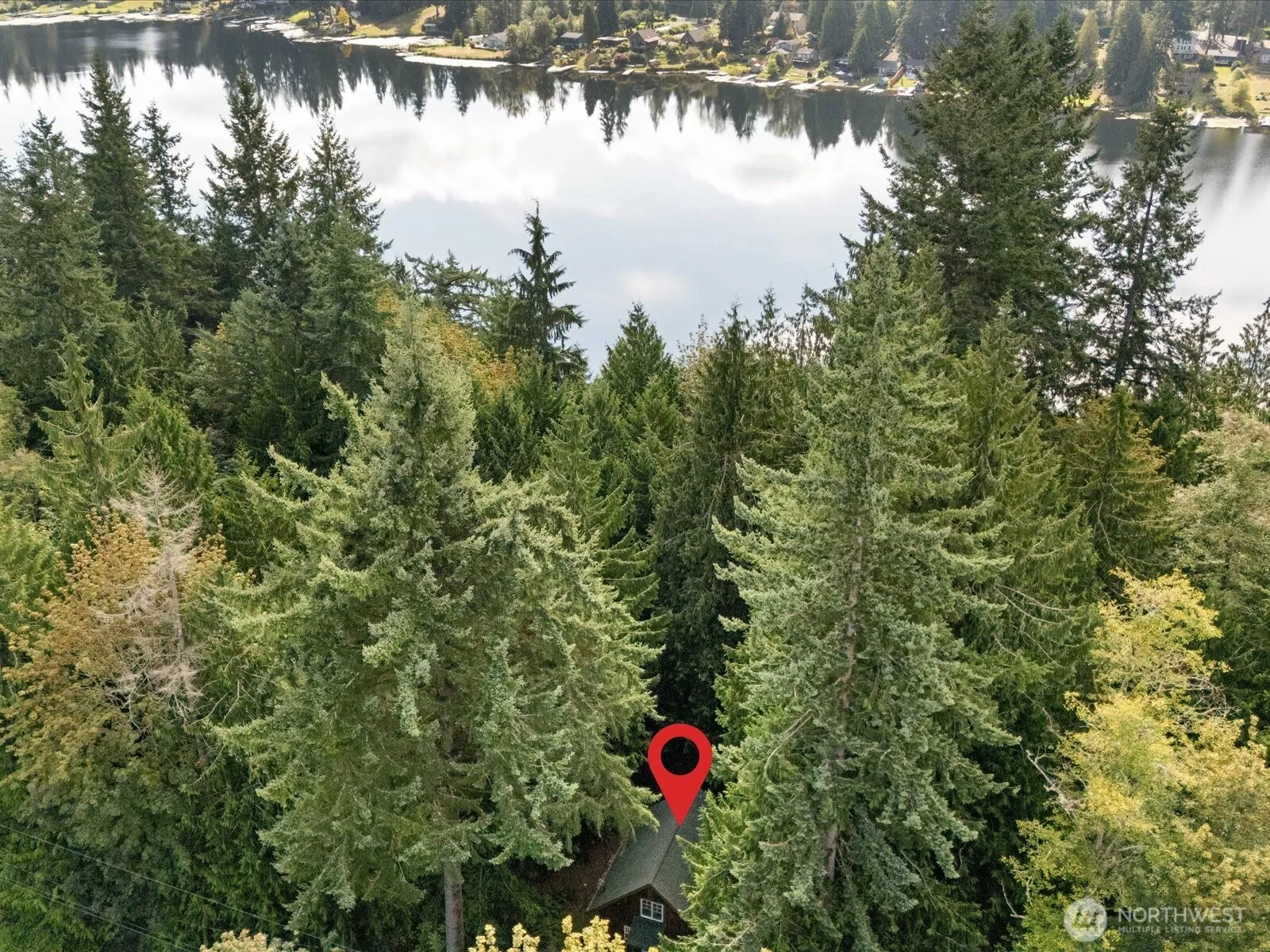 Escape to your own cabin hideaway by Lake Bosworth. Surrounded by evergreens, this retreat blends rustic charm with modern comfort, while being only minutes away to amenities. Vaulted ceilings, big view windows, and propane fireplace create a warm lodge feel, while fir cabinetry and open living spaces invite connection. The main floor offers a bedroom, full bath, and laundry, while upstairs a loft suite with dual closets looks out over treetops and the lake. A newer roof, pre inspection + septic insp & pump adds confidence. Outside, gather around the firepit, plug in at the 220 garage outlet, utilize the generator plug in to stay connected, or launch your boat just down the road, all while savoring the peace of your private forest setting.