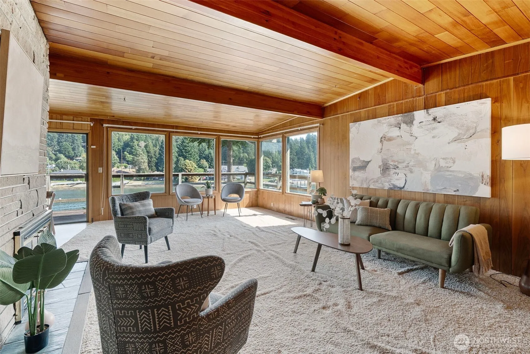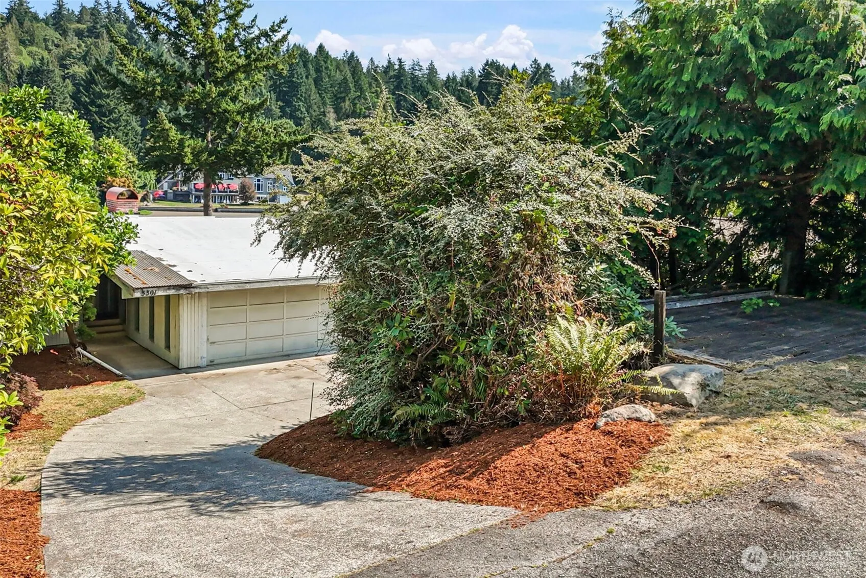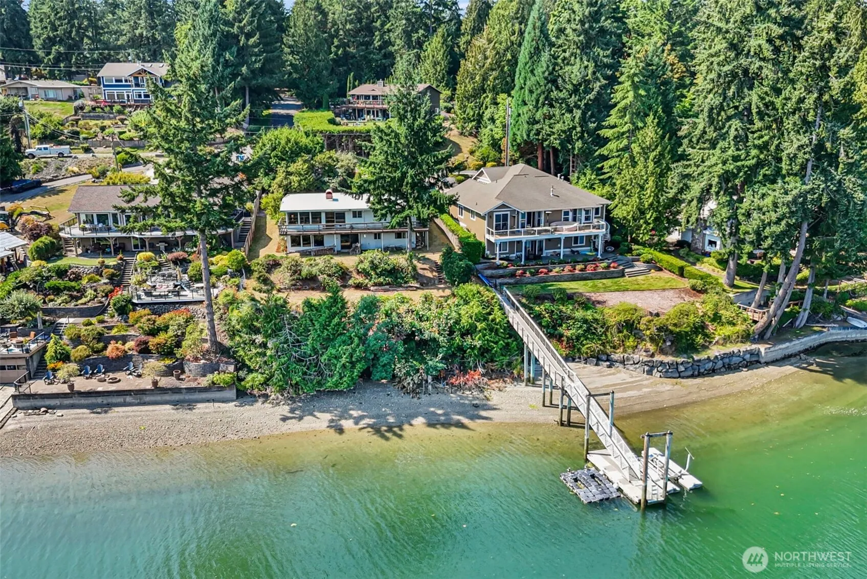 “Heaven is a little closer in a home by the water”. Discover your waterfront escape on Wollochet Bay! Enjoy stunning views of Mt. Rainier, abundant wildlife, and easy access to the water. The shared dock, 85 ft of wft, and a community boat launch close by, are perfect for any paddleboard, kayak, or boating enthusiasts. Styled with character, walls of windows fill the mid-century interior with an abundance of light and views that won’t disappoint. The home’s layout lets you live comfortably on the main level yet gives you added space on the lower level for guests, a studio, workout space or cozy family room retreat. Let your imagination soar and your creativity blossom as you make this home your own and settle into the waterfront lifestyle!