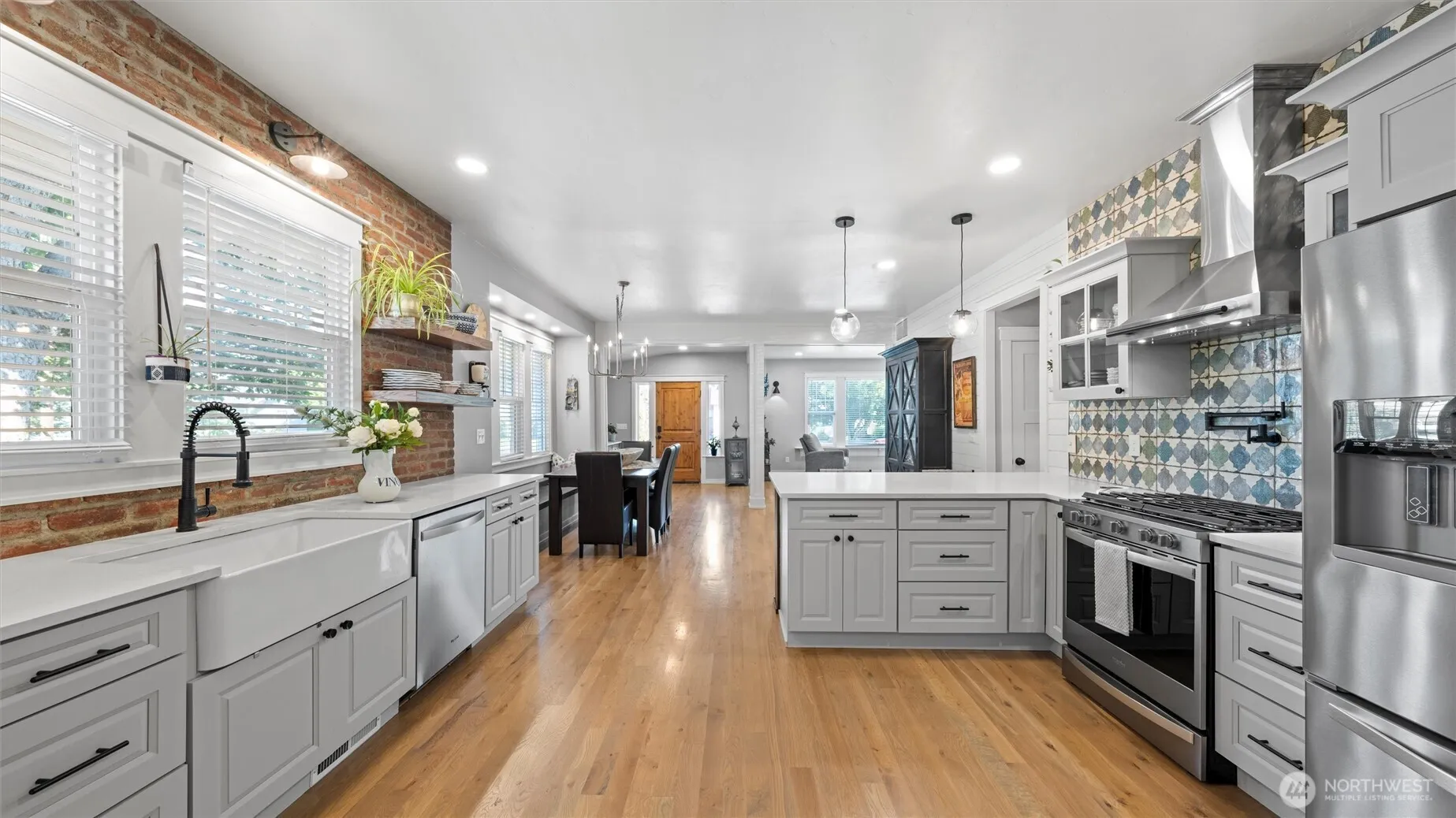 In historic Walla Walla, this renovated move in ready home blends period character w/modern thoughtful finishes. The open main level features new hardwood floors & a dining nook w/a built-in bench that leads to a kitchen w/quartz counters, shaker cabinetry, a full height artisan tile backsplash, exposed brick,& an apron front sink. The main floorr primary suite includes a walk in closet & a spa bath w/a herringbone shower & a freestanding tub,plus a separate powder rm. The finished lower level adds a 2nd living rm, 2 bedrooms,a full bath, & laundry. Outside is a covered front porch & a fully fenced backyard w/a covered outdoor kitchen, patio, garden beds, irrigation, & a detached garage. Updates include electrical, plumbing, HVAC,& windows.