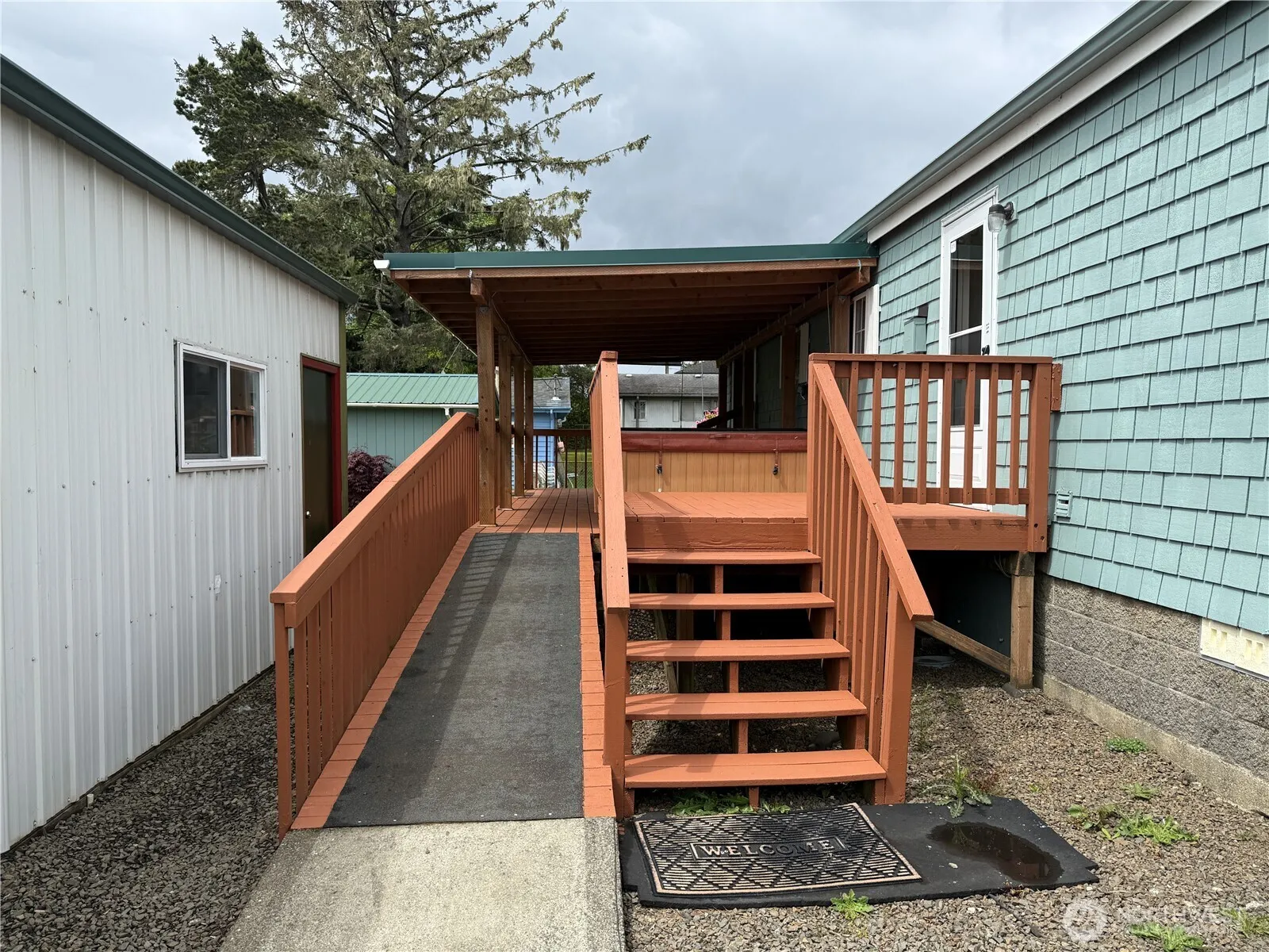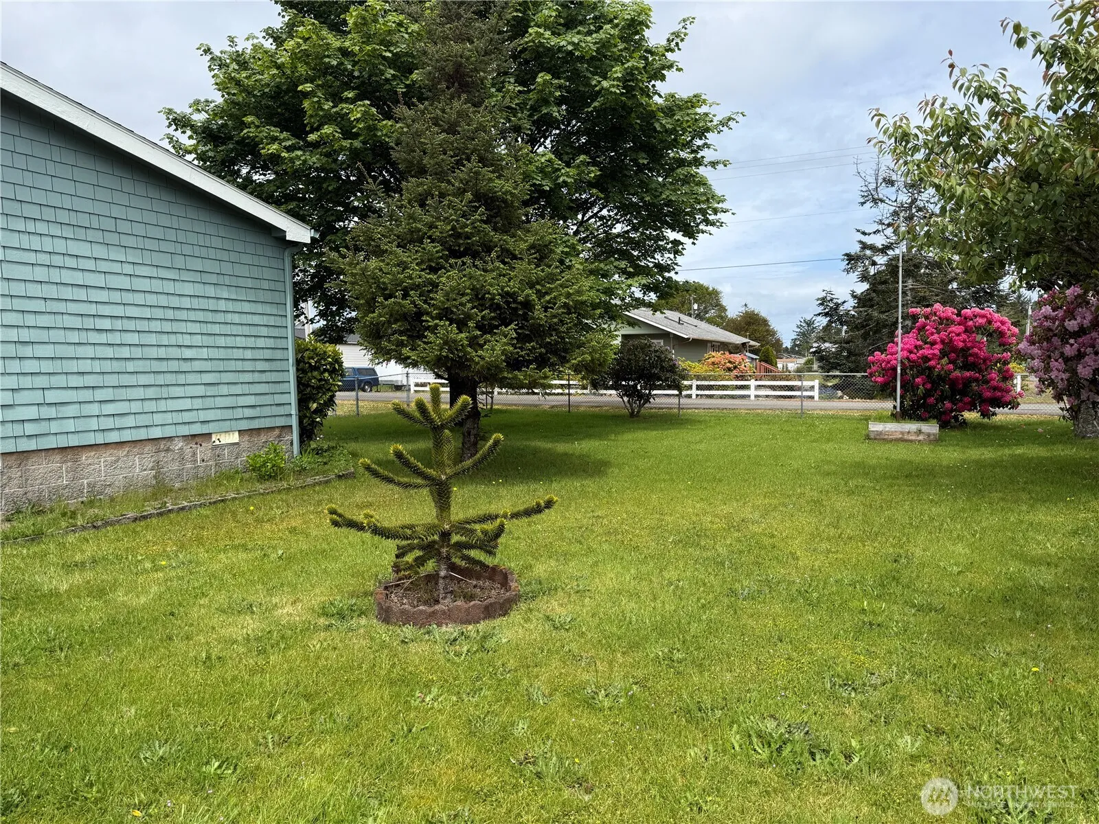 An ideal home in an ideal location. This very well-kept home has a great primary bedroom with private bath and walk-in closet. The second bedroom is also large enough for various uses. Off the dining room through the sliding glass doors is the covered deck that includes a full sized hot tub. Great for BBQ and entertaining. The double corner, fully fenced, yard provides a lot of room for play, gardening or just quiet enjoyment with your furry friend. Newer laminate flooring, a mini split for additional comfort in the winter and cooling in the summer, washer/dryer included. South two lots are available for private sale if buyer has interest in them.