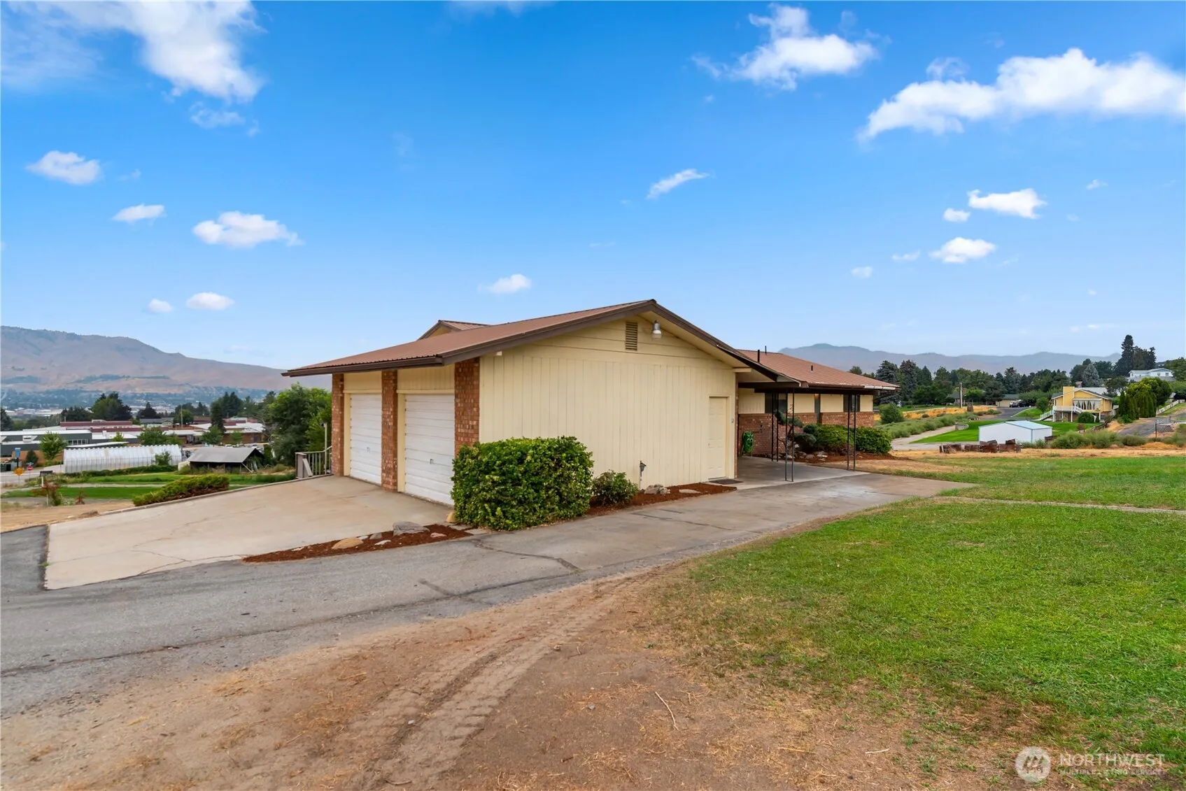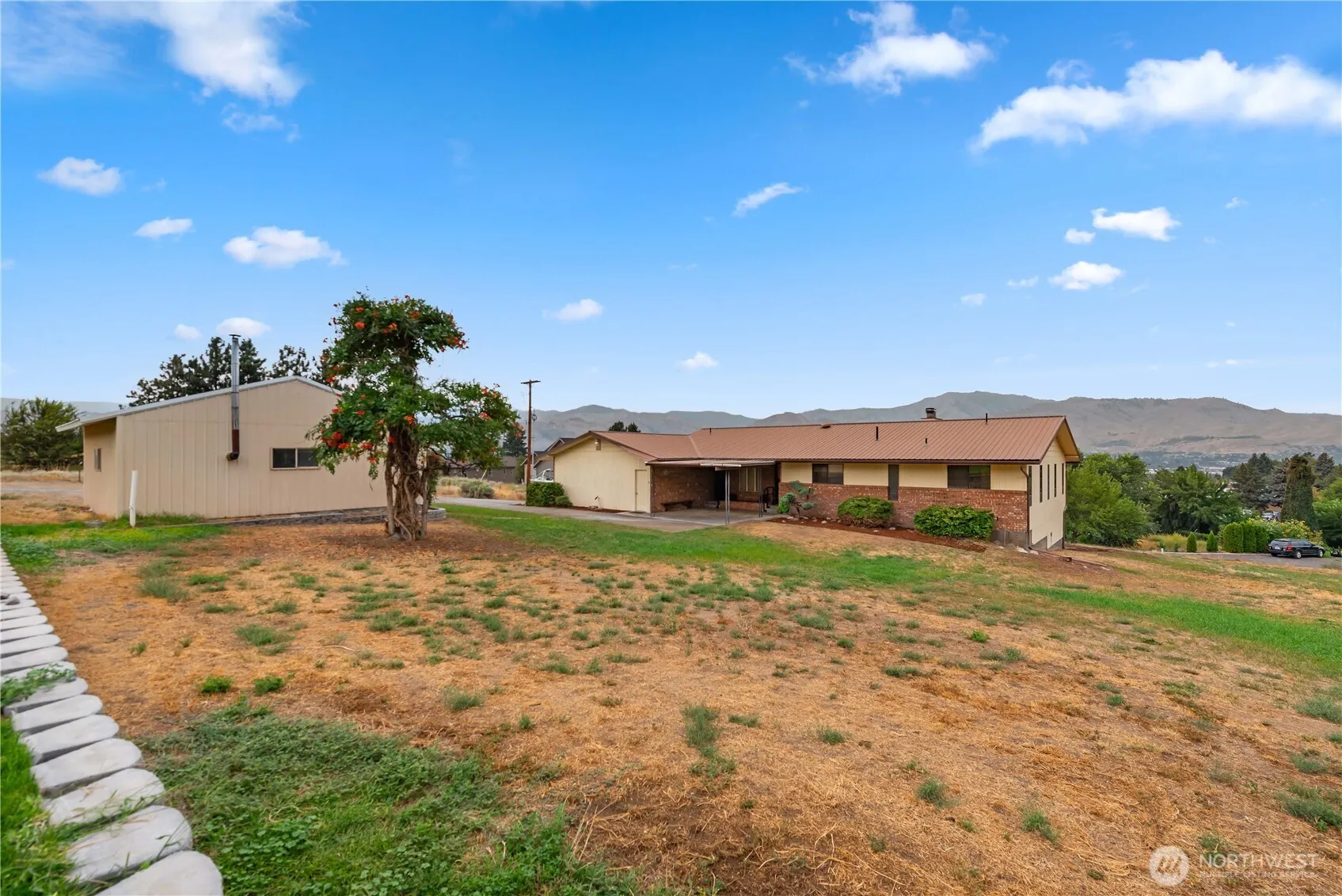 This home sits on 1.41 acres prime view property. Great bones, solidly built with great investment opportunities. Main floor has 2.5 baths, 3 bedrooms & large view windows to let in natural light & to gaze on the beauty of the valley, Columbia River, Enchantment Mountains. Large open living – dining area w/cozy wood fireplace, built-ins. Walk in pantry. Covered deck & patio to relax, entertain, take in the views. Multi generation living possibility on lower level features complete kitchen, open floor plan, separate entrance. True 2 car garage with cabinets. Spacious detached shop with heavy duty bench & more parking. Close to schools & shopping. Yard is a blank slate. Build your dream oasis. Irrigation water. Estate property Sold as is.