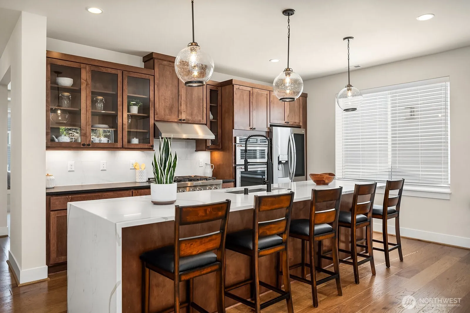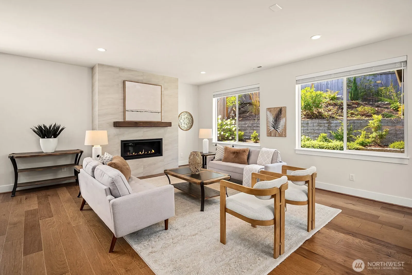 Rising above the rest with stunning mountain views and exceptional craftsmanship. This 5-bed contemporary home is impeccably maintained & upgraded throughout, it offers true move-in perfection. Highlights include hardwoods throughout, a tiled spa-inspired ensuite, designer finishes, A/C, EV charger, & whole-house Generac generator for peace of mind. The versatile lower level is ideal for multi-generational living or guest quarters. Outdoor living shines w/ a covered patio, terraced & private backyard, w/ river & trail access just moments away. Come see what North Bend has to offer — Award-winning schools to endless outdoor adventures. A rare opportunity to enjoy elevated living with comfort, style, & convenience all in one.