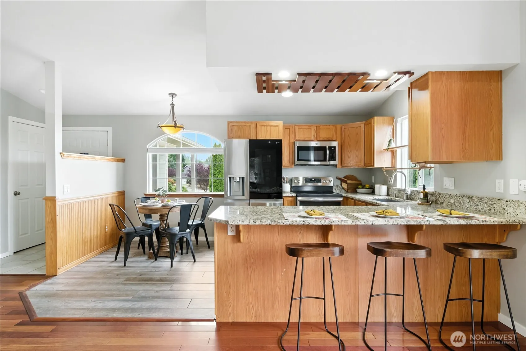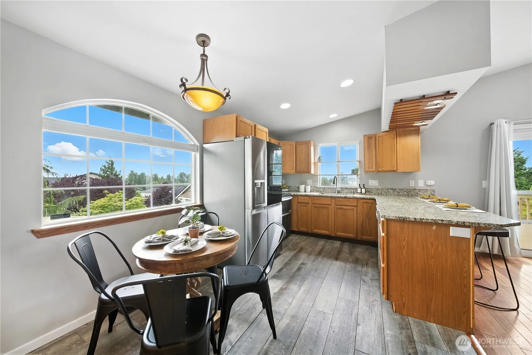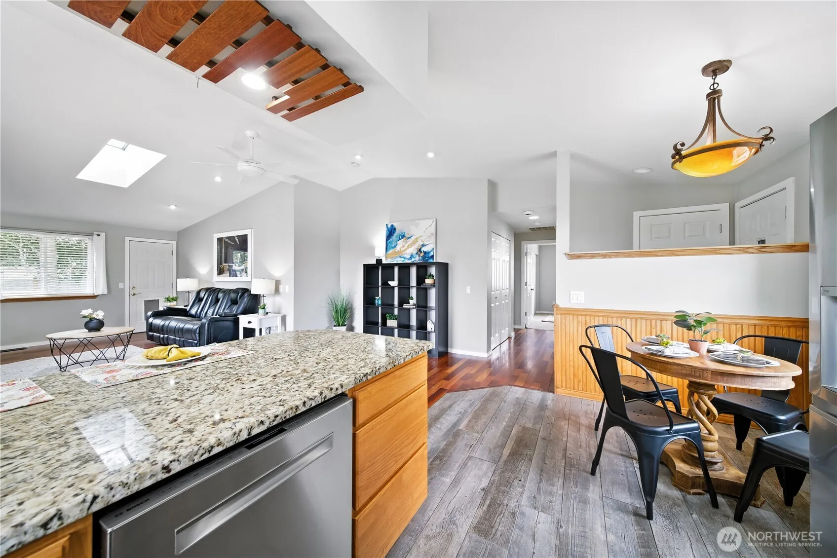 Beautifully updated rambler in Highland View Estates, privately tucked back on a large lot with [West Facing] views of the valley. As you enter you’ll be greeted by vaulted ceilings and stunning hardwood floors. The spacious kitchen features granite slab countertops and modern stainless steel appliances, all overlooking the main living area with a gas fireplace. Just off the living area is the large deck with pergola – ready for your hot tub to relax and enjoy the SUNSET VIEWS across the valley. Down the hall you’ll find the primary bedroom with a beautifully remodeled en suite bath. To top it all off, this well-maintained home boasts a [BRAND NEW 30-YEAR ROOF] with transferrable warranty and a newer furnace and heat pump installed in 2021.