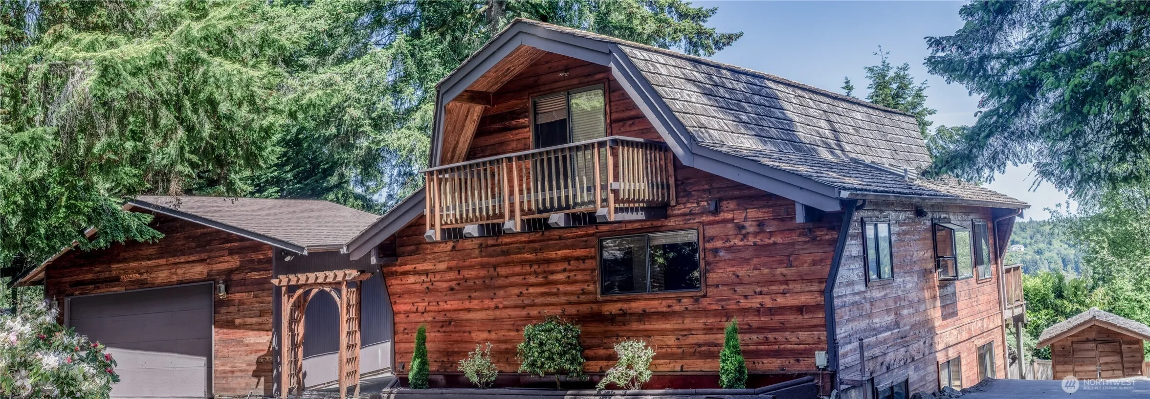 Warm, welcoming cedar lodge style home located in the golf course community of Lakeland Village. Ceiling to floor view windows take in the magnificent view of Mt. Rainier and Case Inlet. This home boosts three oversized bedrooms each with their own bath. Expansive wrap around deck, sports court, storage shed and playhouse round out this spectacular property. Circular drive and RV parking.