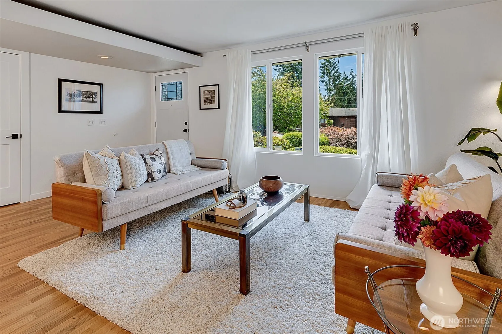 Stylish, move-in-ready rambler with space to live, grow, and entertain! This one-level, 3-bedroom, 1.75-bath home sits on a beautifully landscaped corner lot offering a hip updated kitchen, fresh paint, new carpet, and beautiful original oak hardwood floors throughout. The bright, open layout flows seamlessly out to a large, level private fenced backyard with raised garden beds—perfect for summer BBQs, pets, or play. 2-car garage with extra storage. Close to two new light rail stations coming soon (less than 2 mi away), plus quick access to freeways, shopping, dining, & parks. This meticulously maintained home is the perfect blend of comfort, style, & convenience- located minutes from nearby amenities, I-5 & 509. Easy commuter location.