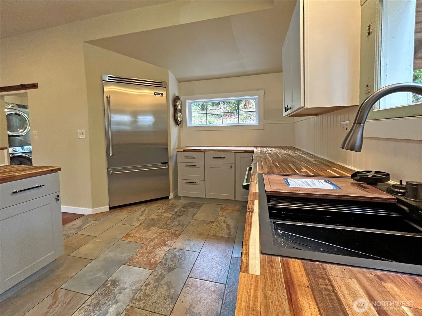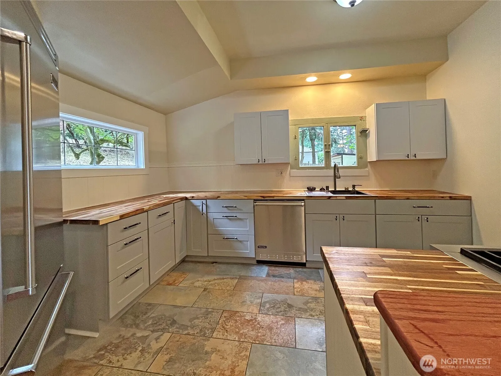 This charming cottage style home hidden on 1.12 acres just north of Blackburn Rd. can be subdivided for future growth. Rare chance to have a piece of Mt. Vernon history hidden in the woods with room to build. Recently renovated historic 1900 homestead & detached guest/MIL. Modern kitchens and bathrooms. Updated kitchen in main house has a Viking refrigerator and Wolf double oven gas range. Luxury sink with bar glass cleaner. Heated floors in kitchen and bathroom for main house. Unique location puts you close to town, parks, medical and shopping, while enjoying a natural secluded wooded lot with endless opportunities. Detached 216 sqft. MIL has covered walkway. Buyer to verify to their satisfaction. RV space and hookup. Piano negotiable.