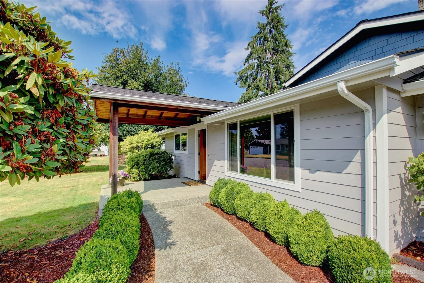 Burlington Rambler…4 bedrooms, 2 bathrooms, just on the edge of town. Nice kitchen with pantry & eating bar adjoins a great room & access to the large, fenced backyard. Split plan w/3 bdrms, full bthrm at one end & primary & 3/4 bthrm plus 5th bonus room above laundry at opposite end of home. Very energy efficient home with solar panels. Lots of upgrades thru the years, flooring 10 yrs ago, new 2nd tank on septic, new drainfield, encapsulated crawlspace, hardiplank siding 2018 & new front & back porch. Newer 2-year outbuilding plus lawn/shop shed, greenhouse & fenced garden. Raised beds, playground, & fenced doghouse area. Close to town, great schools, the library, I-5 – right in the heart of everything Skagit Valley has to offer.