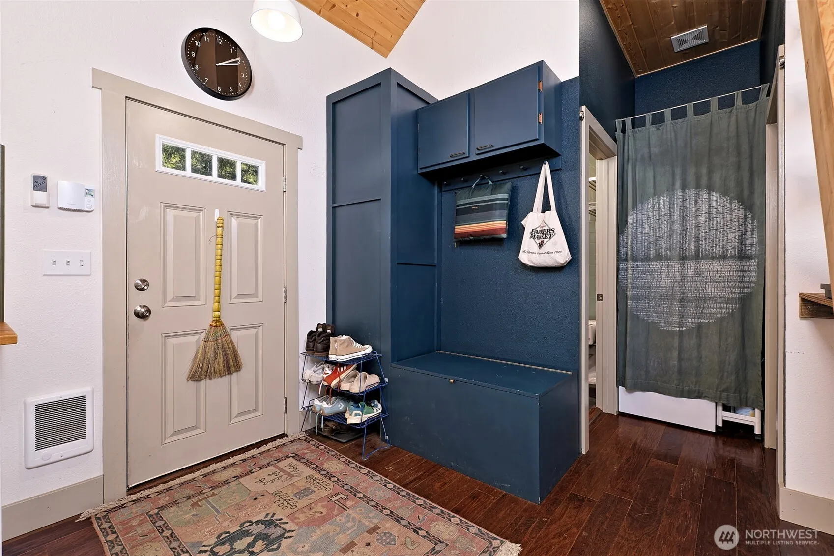 This very cool cabin located on almost 3 acres sits on top of a hill just across the road from Mason Lake & offers great privacy but has wonderful access to all “the things”! This compact home features a great primary bedroom on the main level, a loft for additional sleeping or office/den & a big open living, kitchen & dining area that has high vaulted ceilings & tons of light. The finishing touches are really nicely done as the photos show. All of the appliances are included so just pack your bags and move on in! You will love the property! From the great garden area to the little spots and trails throughout that make great hideaways to read or just sit & enjoy the natural beauty. Might be able to open up a lake view with tree trimming!