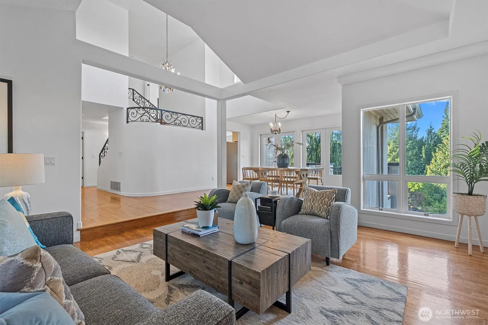 Nestled in the coveted China Creek neighborhood, this elegant residence offers privacy, quality & sweeping views. The dramatic grand foyer opens to a flowing layout that connects living, dining, and entertaining spaces. Vaulted ceilings, expansive hardwood floors & upgraded granite counters thru out. The primary suite features a spa-inspired 5-piece bath w/travertine heated floors, jetted tub. Stunning views of the Olympic Mountains, golf course & city skyline. Enjoy NW living on the 400+ sqft wraparound deck w/ sunset vistas. Over-sized 2 car garage, 2 fireplaces, theater room, home office & freshly painted interiors complete this sophisticated residence. Lower-level w/exterior access & bath offers great ADU or Mother-in-Law potential.