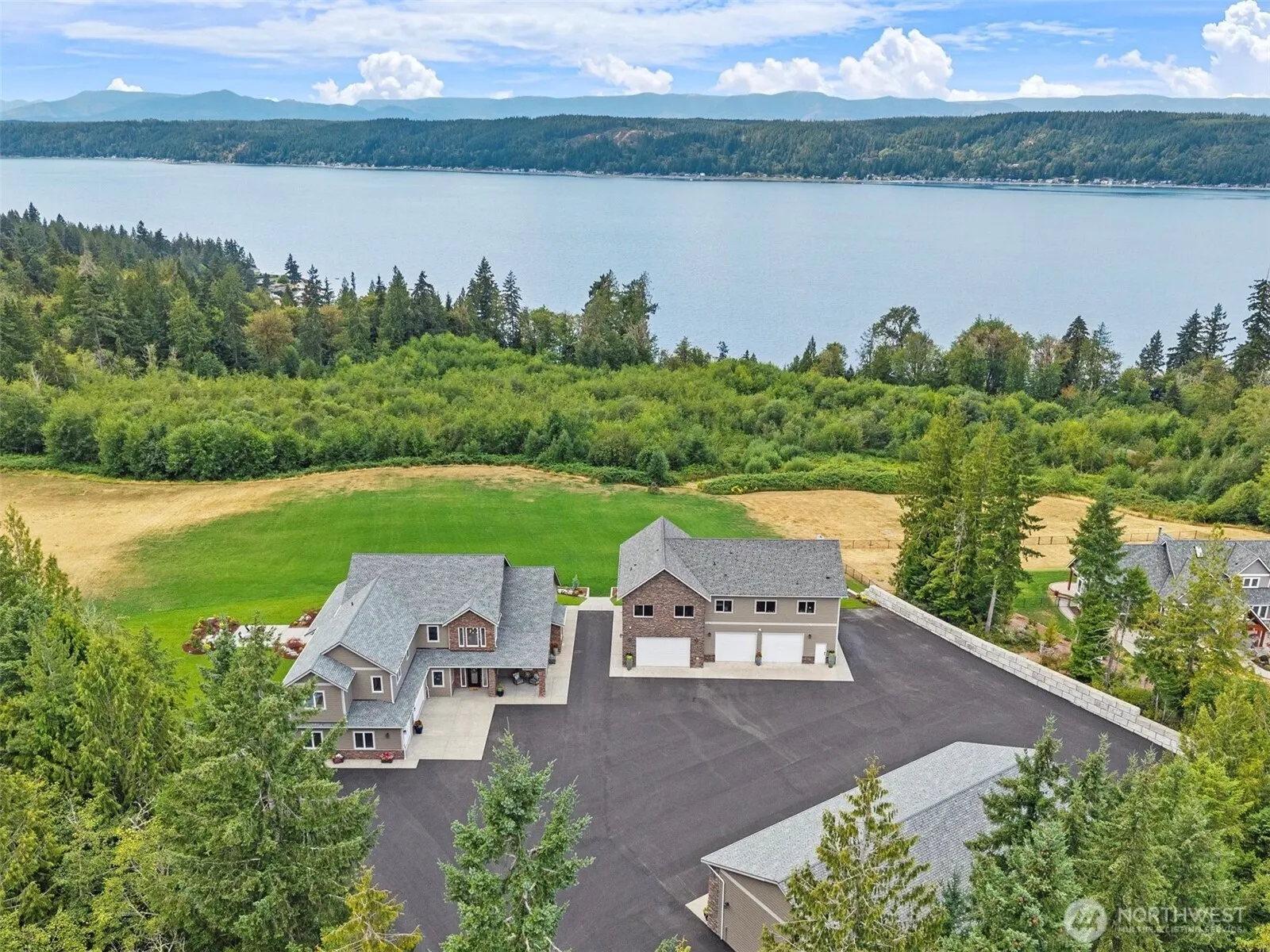 Unparalleled craftsmanship & sweeping VIEWS of the Olympic mtns & Hood Canal! Custom 5acre estate offers lux multi-gen living w/ 3 distinct structures. MAIN HOME ft. soaring 20ft ceilings, wideplank hardwoods & showstopping views throughout. Kitchen w/ Viking appliances, wet bar, Cambria counters & walk-in pantry w/ commercial-grade fridge/freezer. Primary offers spa-inspired 5pc bath w/ towel warmer & walk-in closet. 1bd+office GUEST HOME w/ 3bay garage *MORE PHOTOS AVAILABLE*. 3000sf fully insulated shop w/ 14ft doors. 1000+sf covered outdoor entertaining space surrounded by new professional landscaping. Mins from waterfront, hiking trails, & recreation at Alderbrook, Mason Lake & Olympic National Forest – PNW living at its most refined!