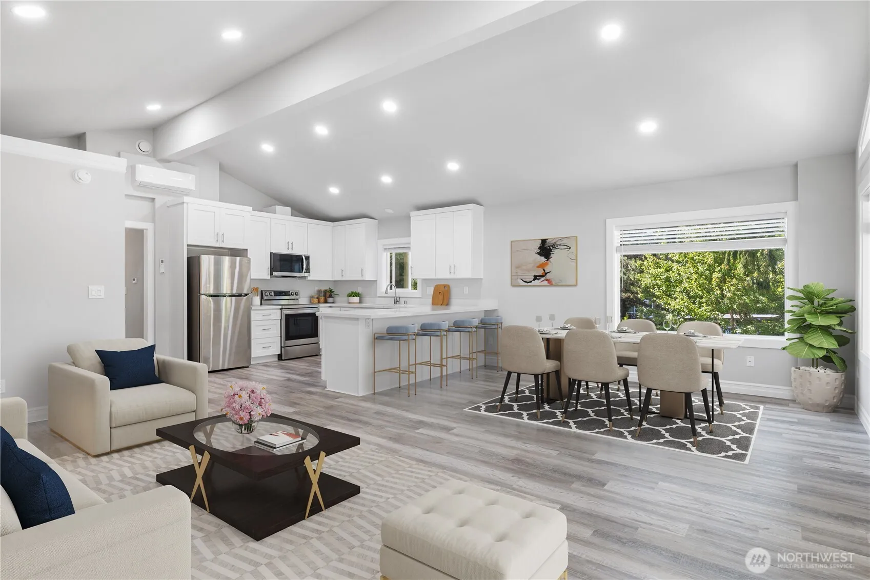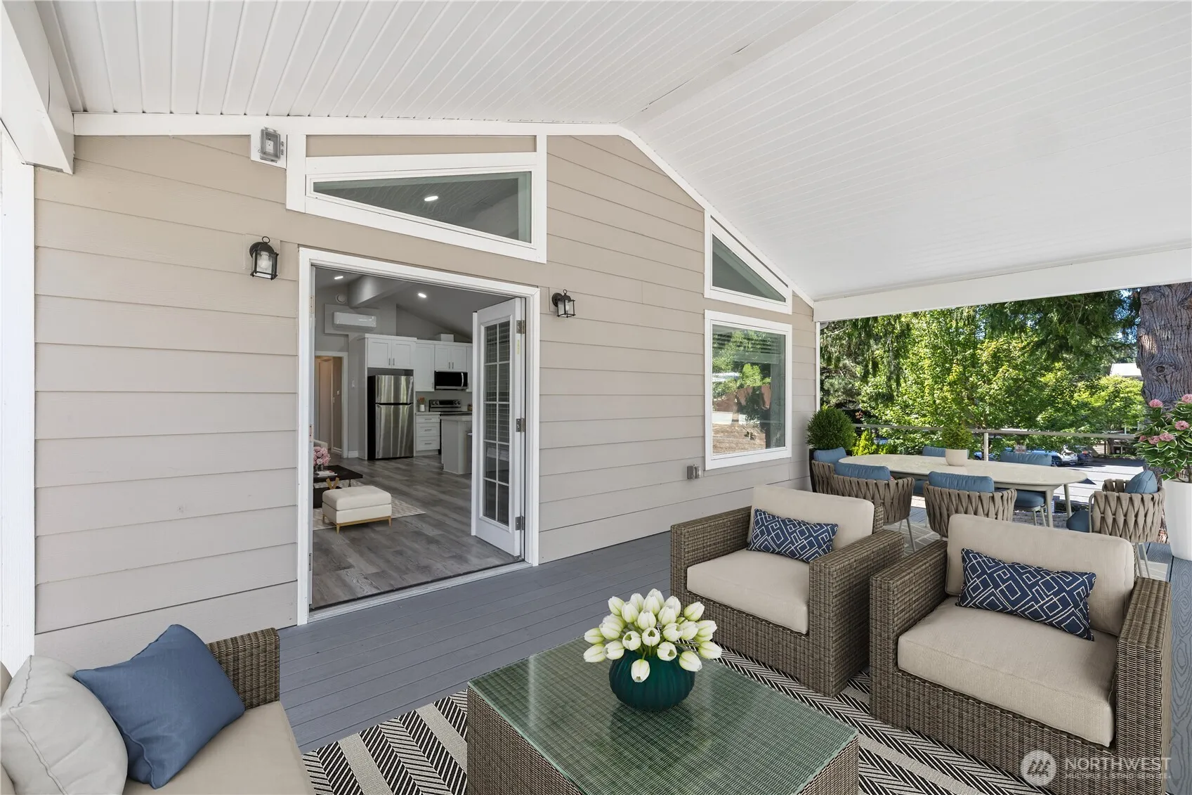 Built in 2023, this modern and stylish 1196 sqft home with great room floor plan features 2 bedrooms and 2 bathrooms. Living room with electric fireplace and French doors to covered deck for all-year enjoyment. Open kitchen with gleaming stainless steel appliances. All appliances stays. Vaulted ceilings throughout for an airy light and bright atmosphere. Mini-splits for heat and A/C; comfort no matter the season. Each bedroom features a walk-in closet and private access to backyard deck. Fantastic location in sought-after Edmonds, just minutes to the waterfront and a multitude of restaurants and shops, plus several nearby parks and beaches. Easy access to transit and thoroughfares to major job centers. Two-car carport. Edmonds Schools.