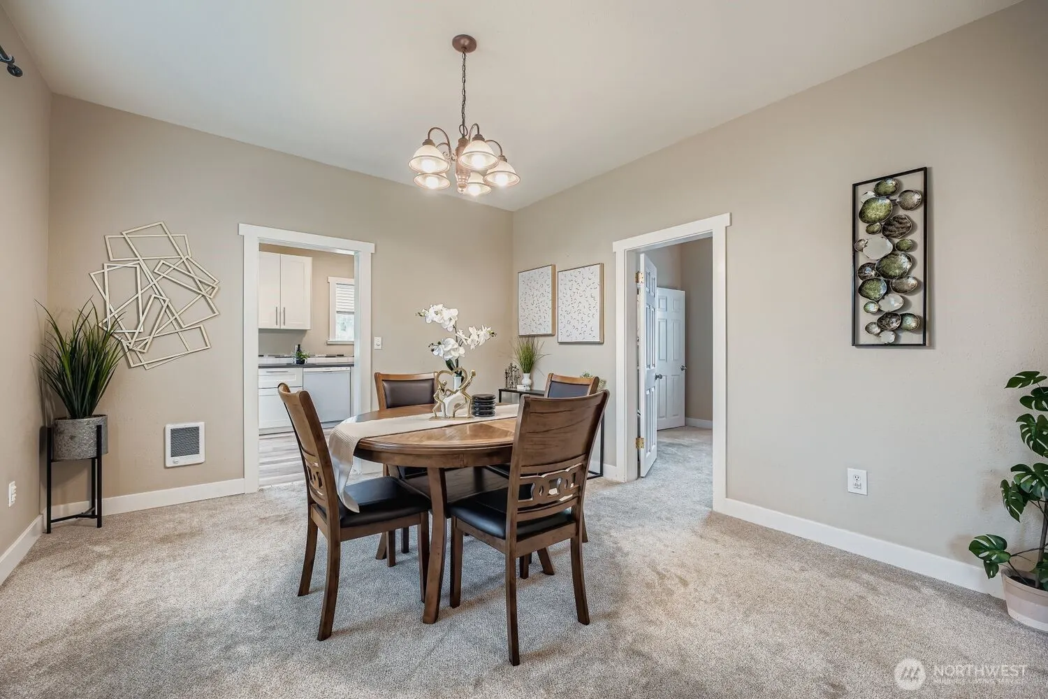 Lovingly updated bungalow in Black Diamond! Charming remodeled 2-bedroom/1-bath home with 790 sq ft of comfortable living space. This home features a spacious kitchen with a smart, functional layout and a separate laundry area. Newer interior paint, carpet and vinyl plank flooring. Enjoy tranquil territorial views from the back deck. Large, mostly level lot offers garden space, fruit trees, room for a dog run, ample space for parking RVs, boats and more – plus plenty of room for an ADU or potential subdivision for a second home. Durable Hardi Plank siding, recently updated electrical (house & street), plumbing, and sewer line with ADU-ready connection. A rare combination of move-in ready comfort and exciting development potential!