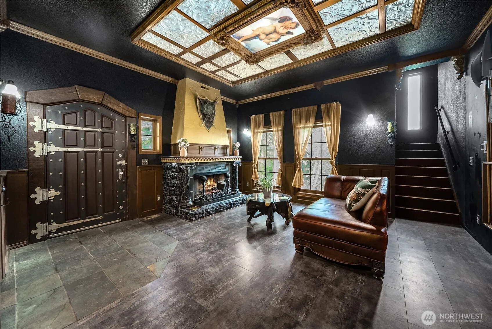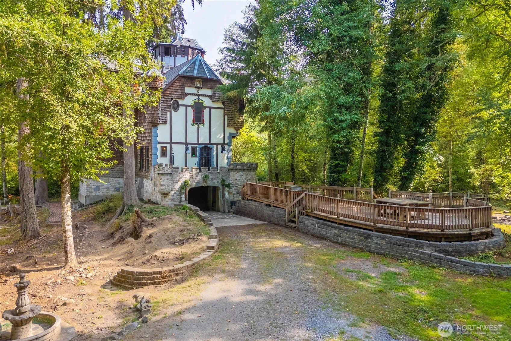 Nestled on nearly 20 private acres, this magical medieval-inspired estate is a rare blend of old-world elegance and modern comfort. Featuring grand stone architecture, soaring timber ceilings, and intricate craftsmanship throughout, this home offers a living experience like no other. Expansive windows frame serene forest views and unique turret spaces add charm and warmth. The property includes spacious living areas, formal dining, and endless potential for customization. Outdoors, enjoy rolling grounds perfect for gardens, gatherings, or creating your own retreat. This one-of-a-kind property is a dream for history lovers, creatives, and those seeking a private sanctuary with unforgettable character.