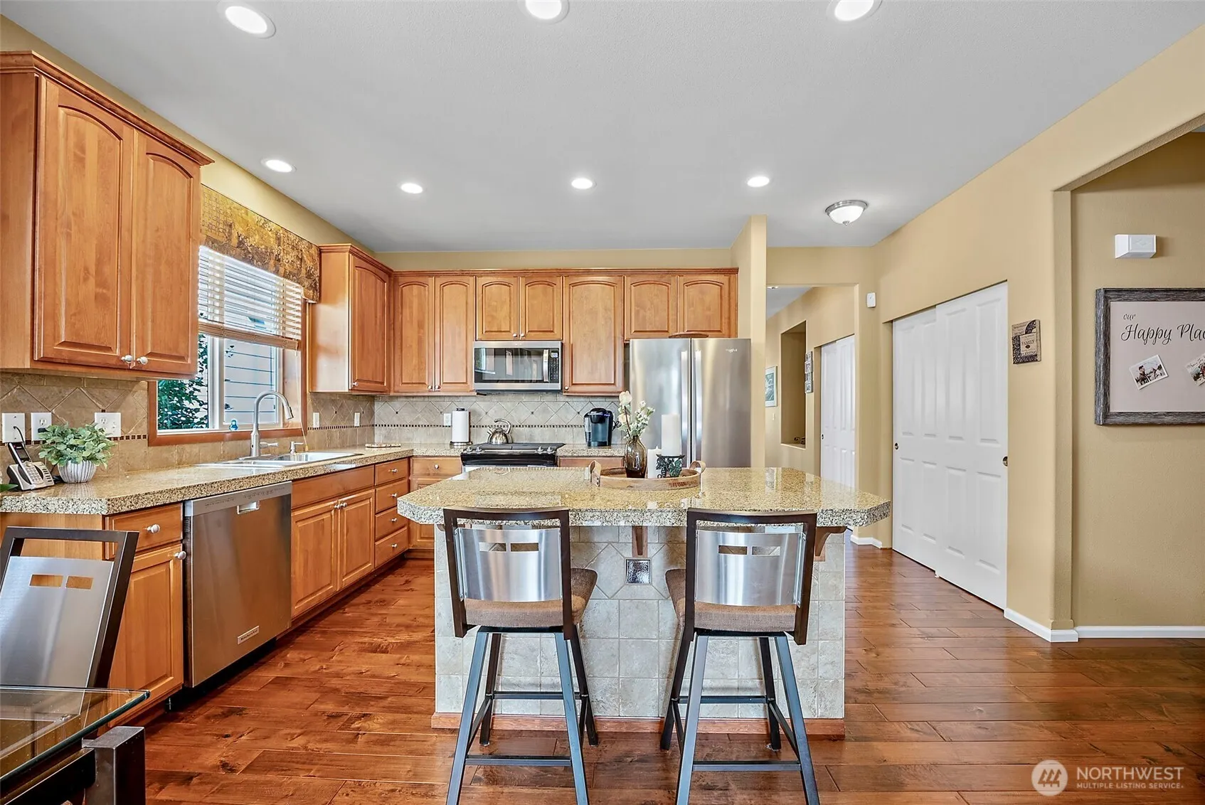 Beautifully maintained home featuring an inviting open layout with hardwood floors and abundant natural light. The kitchen shines with granite counters, a large island, and seamless flow to the dining and living areas—ideal for gatherings. Retreat to the private primary suite with dual sinks, soaking tub, and walk-in shower. Enjoy a fully fenced yard, patio, and mature landscaping, perfect for relaxing or entertaining. Conveniently located near parks, schools, shopping, and easy I-5 access—this home truly has it all!