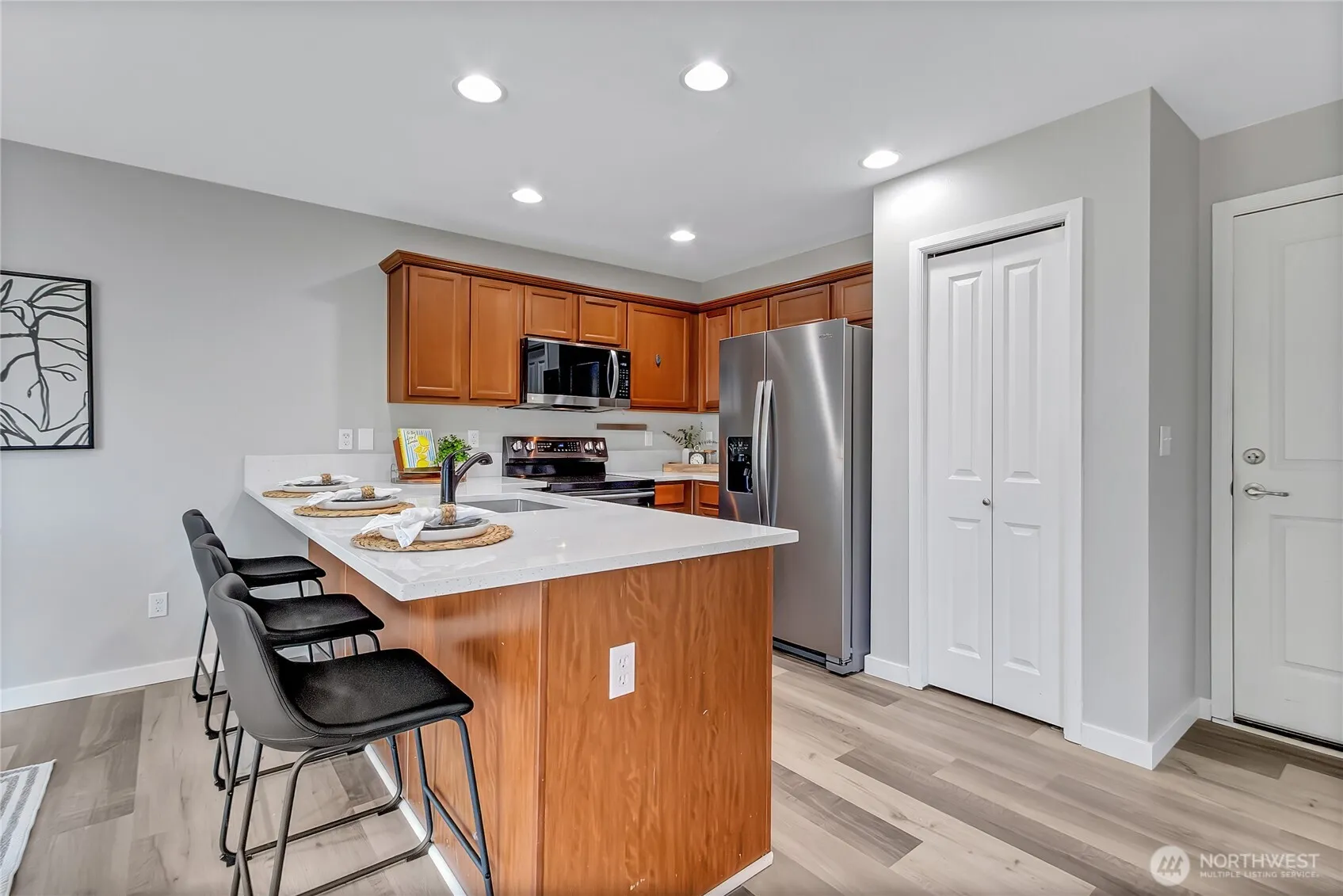 Welcome Home to this spacious, remodeled, 4-bedroom, 2.5-bath home in Maple Valley’s sought-after Woodridge neighborhood! Enjoy an open layout with a bright living area, modern kitchen and versatile main level den/office -perfect for working from home. Retreat to a generous primary suite with ensuite bath and walk in closet, 3 generous sized additional bedrooms, main bath and laundry upstairs. Entertain in the private yard. All new flooring, interior paint, doors, millwork and quartz countertops. Just minutes from shopping, restaurants, and parks, with easy access to major commuting routes for your daily travels. Award winning Tahoma Schools. Don’t miss your chance to own this ideal blend of comfort and convenience!