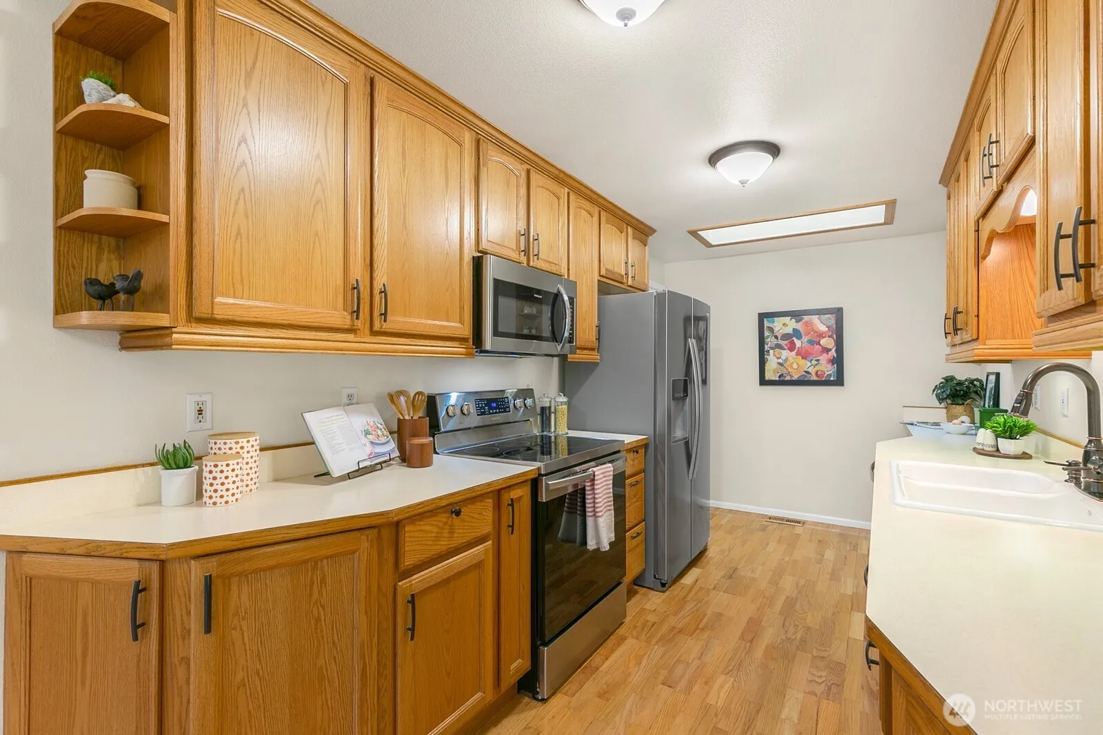Welcome to Huntington Park a premier 55+ community in a well-tended enclave of easy living homes. This 2BR/1BA shines w/oak hardwoods, light-filled living & dining area, a refreshed bath with walk-in shower. 2nd bedroom flows to a tranquil back deck that steps out to community greenbelts and meandering walking paths, perfect for morning coffee and sunset strolls. This home offers true single-level ease, low-maintenance living, and a quiet, tree-lined setting. Known for its friendly community and relaxed, independent living. Just minutes to downtown Des Moines, the marina, and Saltwater State Park. Enjoy serenity without sacrificing access to shops, dining, and transit. Move-in ready, comfortable, and connected.Your next chapter starts here.