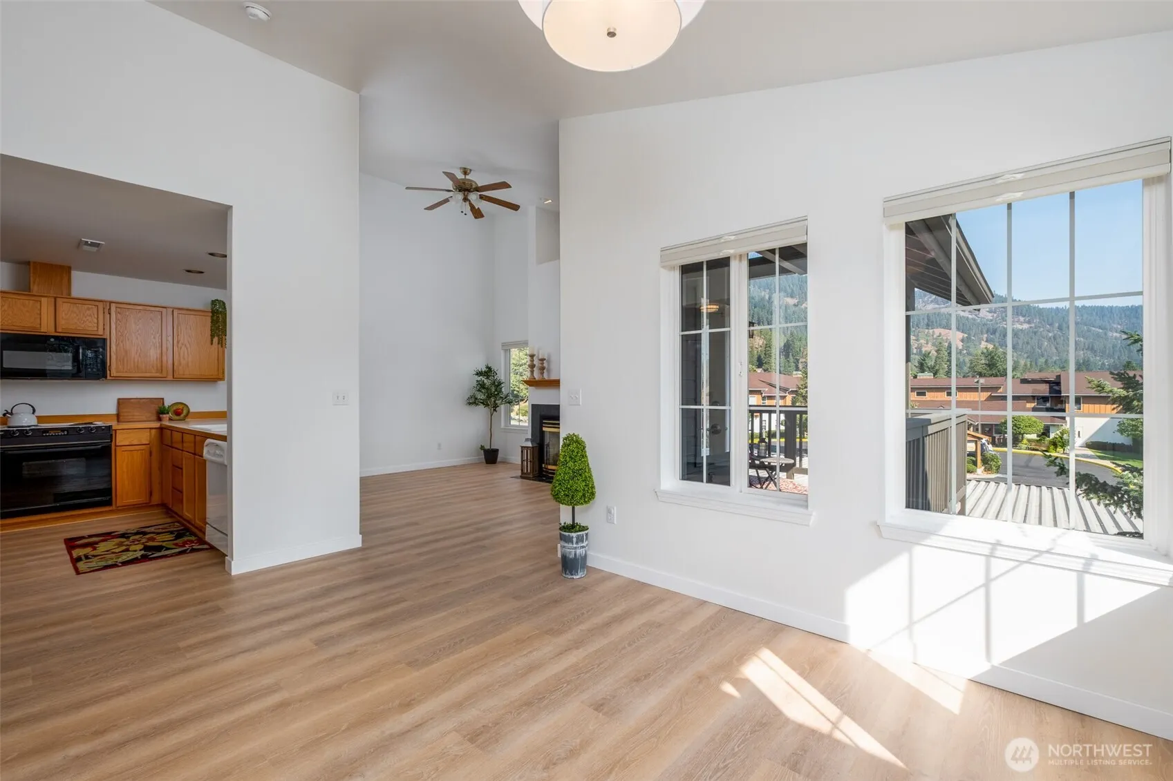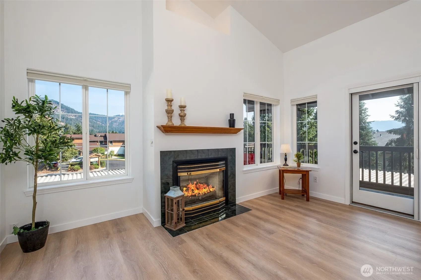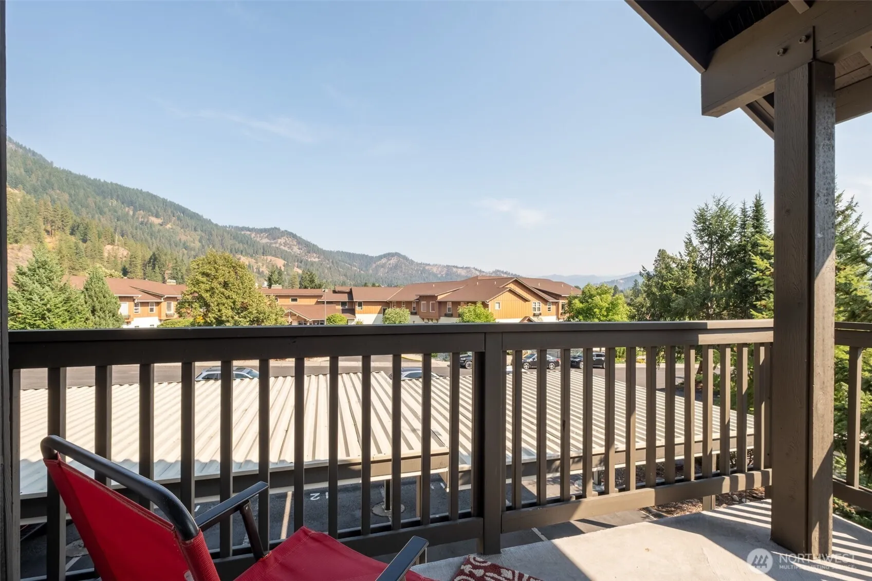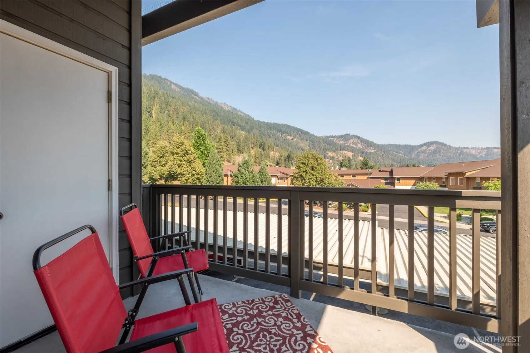 Fantastic opportunity to own a 2-bedroom condo near downtown Leavenworth! This newly updated upper level unit at Alpenglow Condos is nestled near the mountains with a covered wrap around deck to enjoy breathtaking mountain views! Embrace low-maintenance living in this beautiful condo with vaulted ceilings, an open floor plan, and a cozy fireplace. One covered parking space and extra guest parking is available. This property offers stunning scenery and a prime location close to shops, restaurants, and outdoor recreation Perfect as a primary home or vacation retreat!