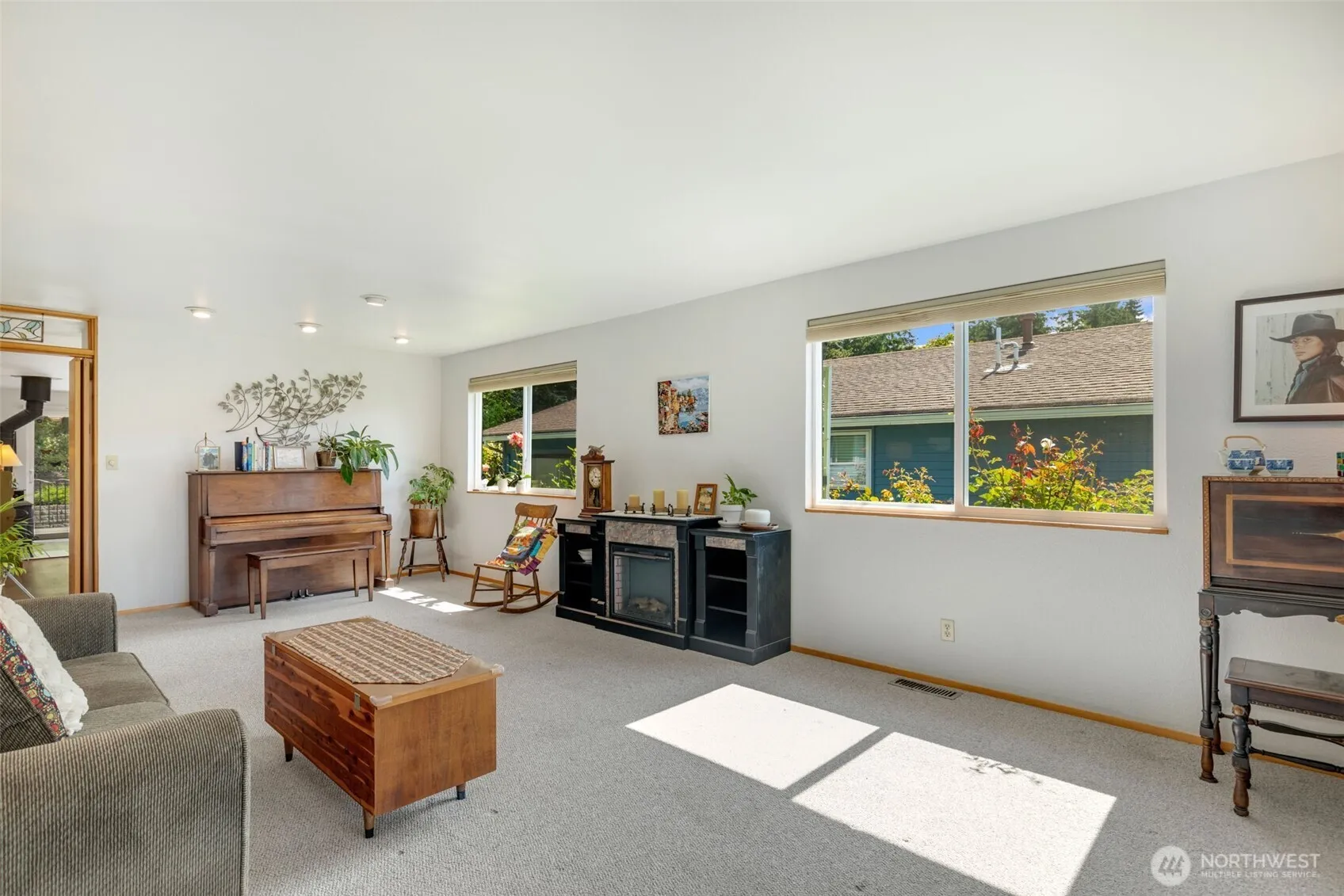 This is it! Natural light abounds in this single story home in 55+ desirable Huntington Park – 2 beds, 2 baths + den w/ too many upgrades to mention! You will love the view from the spacious primary bedroom, featuring double closets & convenient walk-in shower. Open concept kitchen w/ pantry flows into the cozy den & gas stove fireplace. Out back, you have a low- maintenance composite deck looking out on your pristine, private colorful yard – bonus is a fenced area for Fido! In front, enjoy your surroundings and sip coffee from the covered porch. Newer roof, furnace, AC, vinyl windows, laminate wood flooring, sprinkler system, generator & no popcorn ceilings! Installed people/chair lift gives you a zero stair option from the garage.