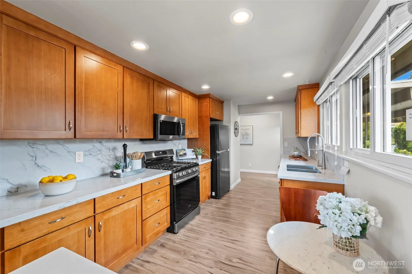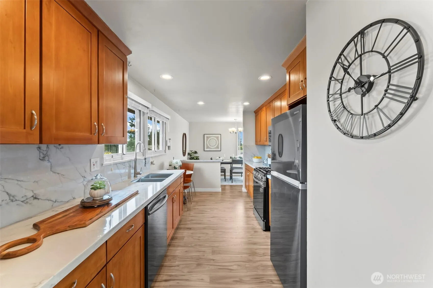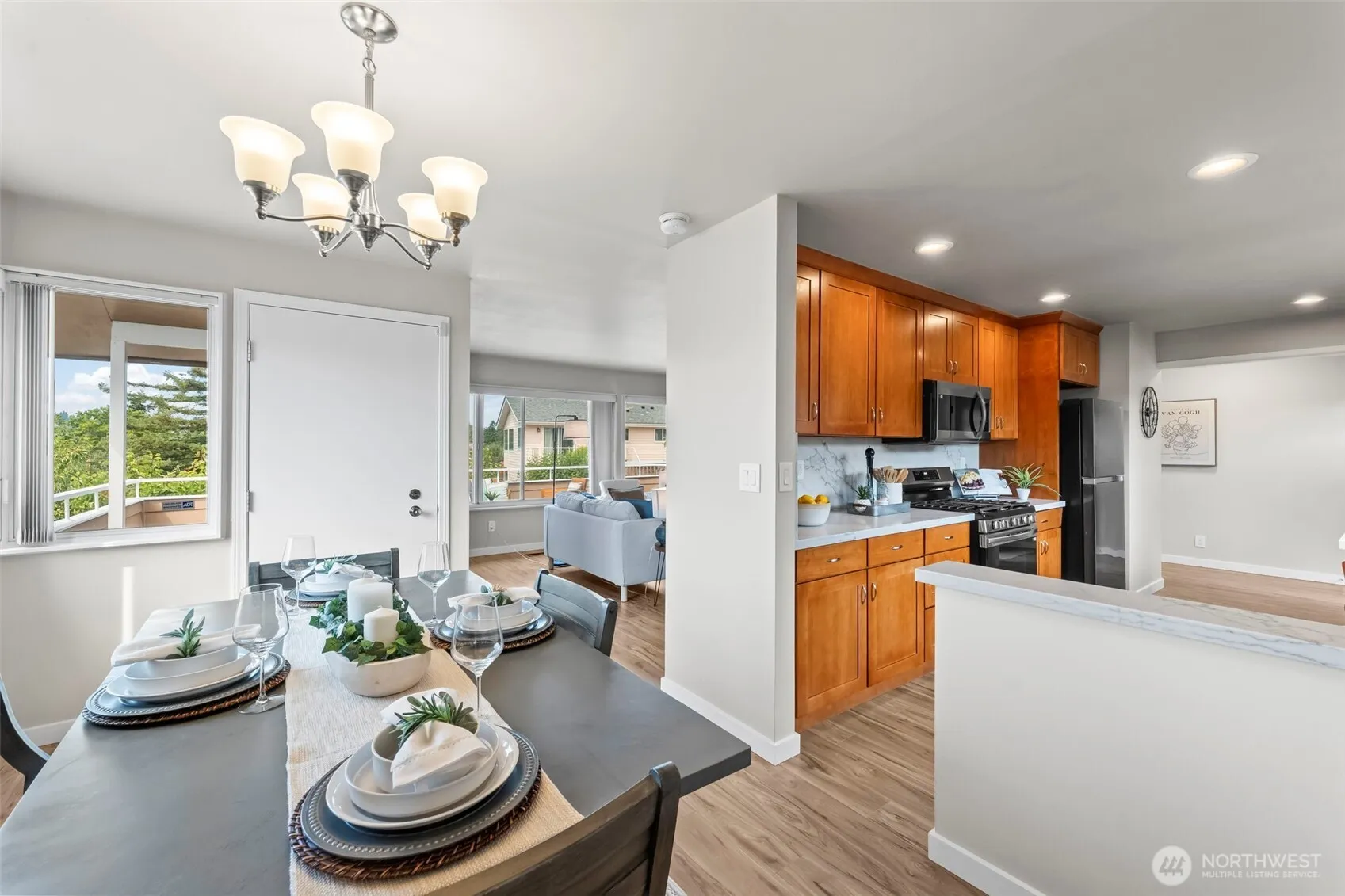 A chance to experience 3,300 sqft of mid-century modern living w/stunning Sound views and sunsets from your expansive deck. The updated kitchen features shaker cabinets, a new cooktop, and designer finishes, opening seamlessly to warm wood flooring that flows throughout the main level. The remodeled daylight basement offers a full bath, family room, bonus room, office/den, and addt’l bedroom ideal for multi-generational living, a private suite, Airbnb income, or even conversion to an Adult Family Home. Relax in the sunroom hot tub or unwind as natural light pours through oversized windows Just minutes from the Des Moines Marina and the vibrant downtown waterfront this home is a must-see to truly appreciate its style, space, and versatility.