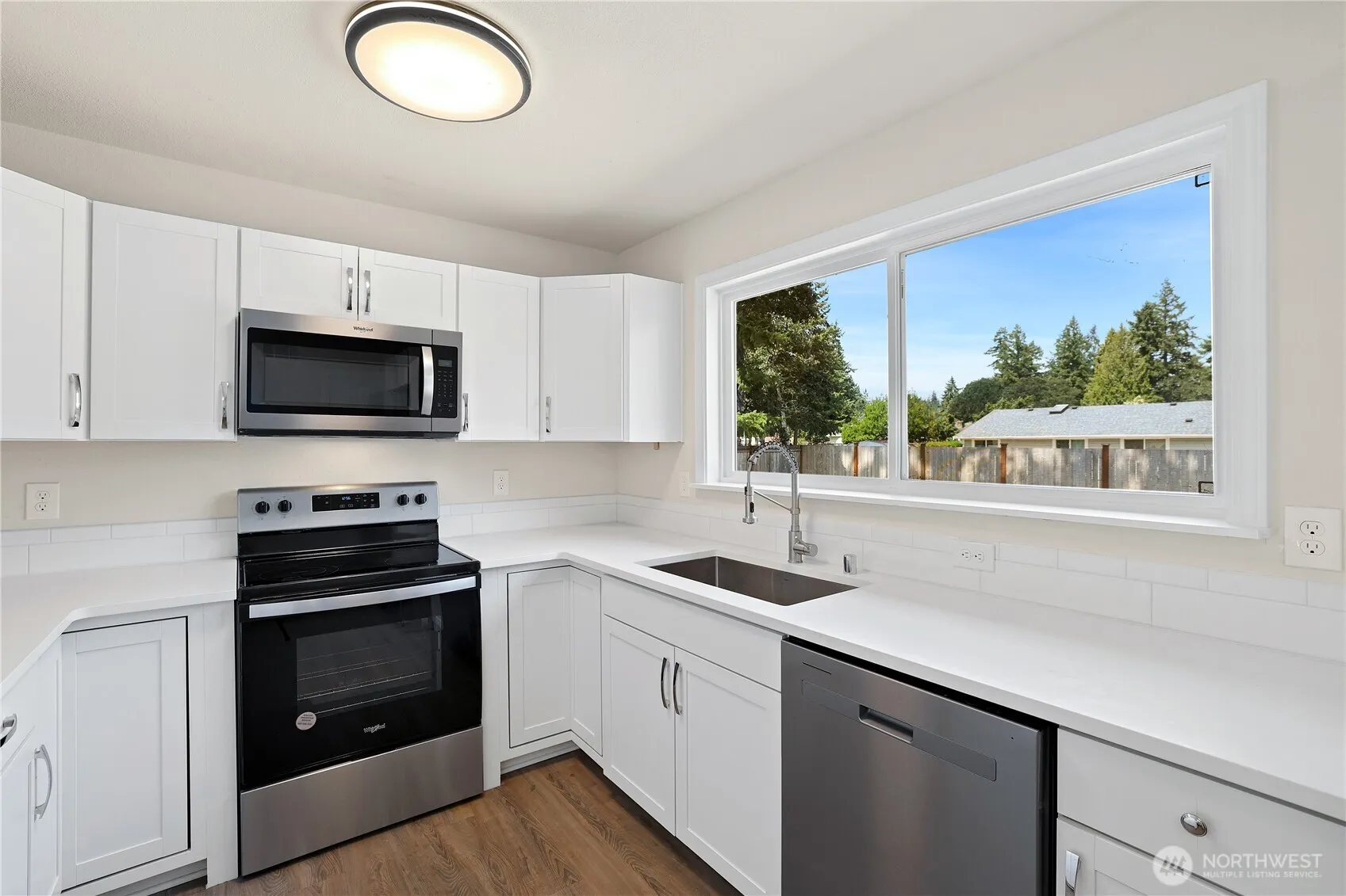 Welcome home to this absolutely adorable turnkey, fully updated rambler! Offering 3 bedrooms & 1 bathroom, featuring a bright, open layout with new flooring, fresh paint, & thoughtful updates throughout. The beautifully remodeled kitchen showcases sleek quartz countertops, classic subway tile backsplash, & stainless steel appliances. Updated lighting, a feature wall in the living room, & classic subway tile with black hardware in the bathroom, this home creates a warm & welcoming feel. Outside, enjoy a spacious yard perfect for gardening, play, & entertaining. With every detail thoughtfully refreshed, this home blends charm & function for all—simply unpack & start living! Conveniently located close to JBLM, shopping & American Lake!