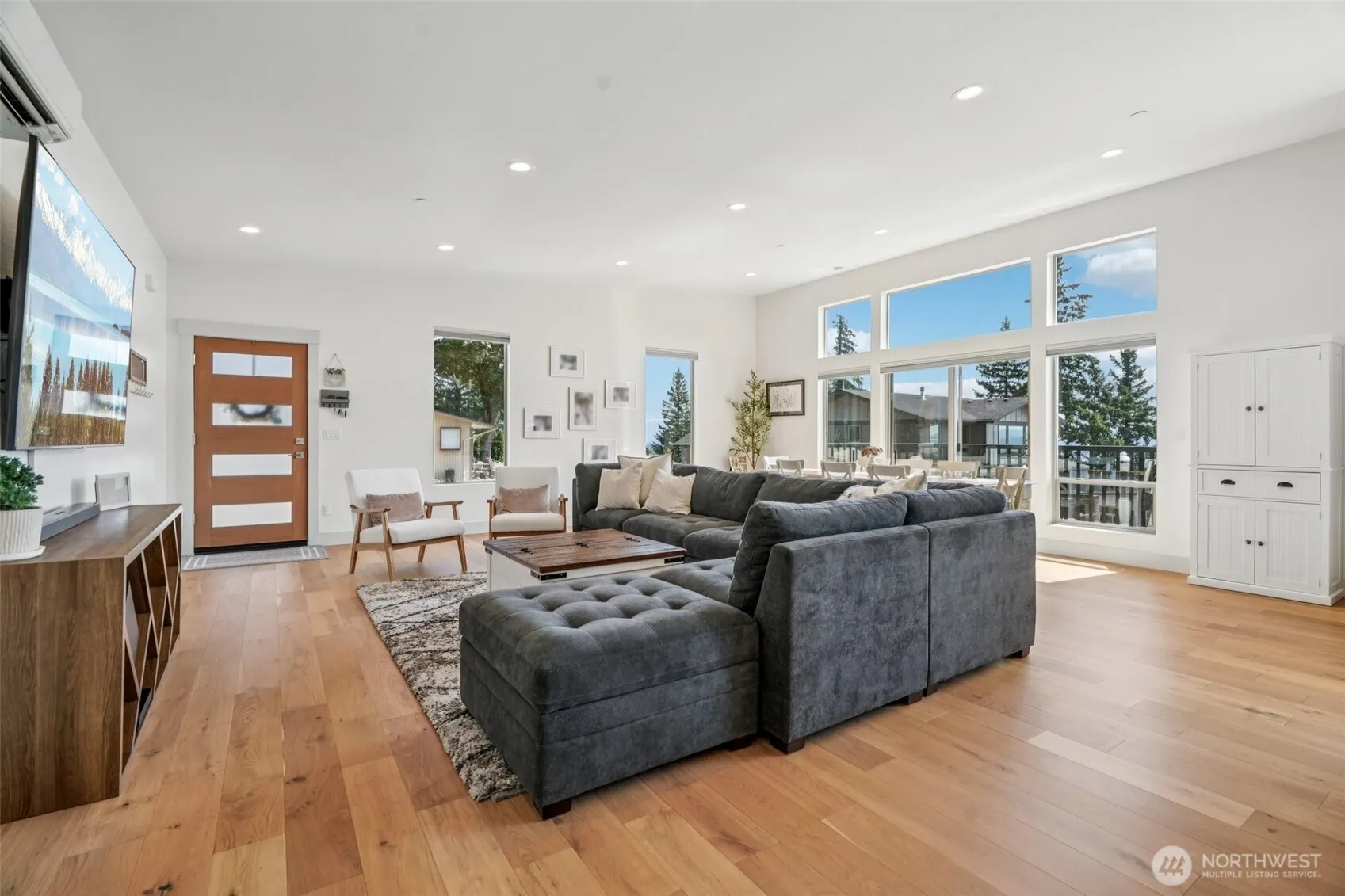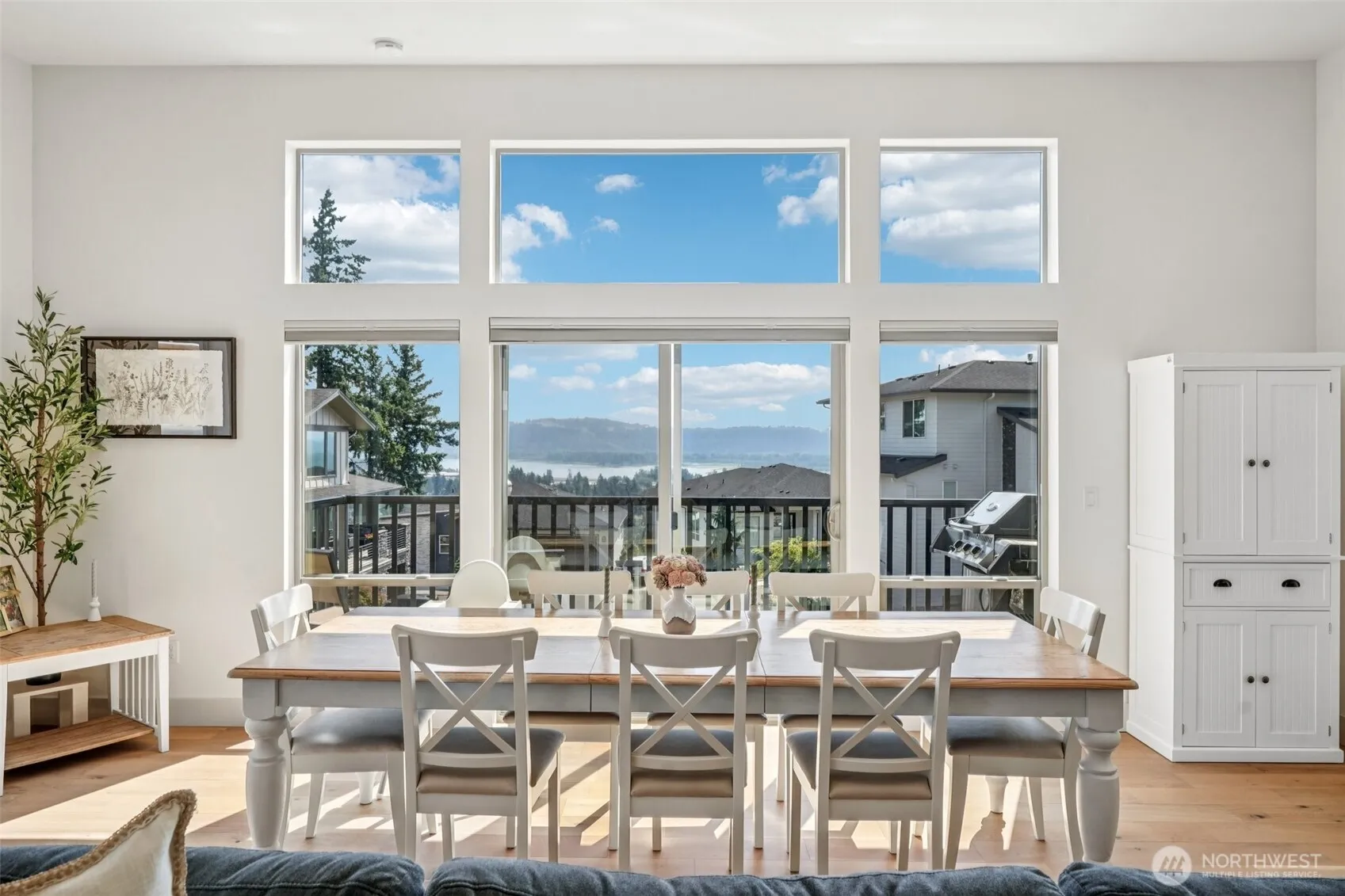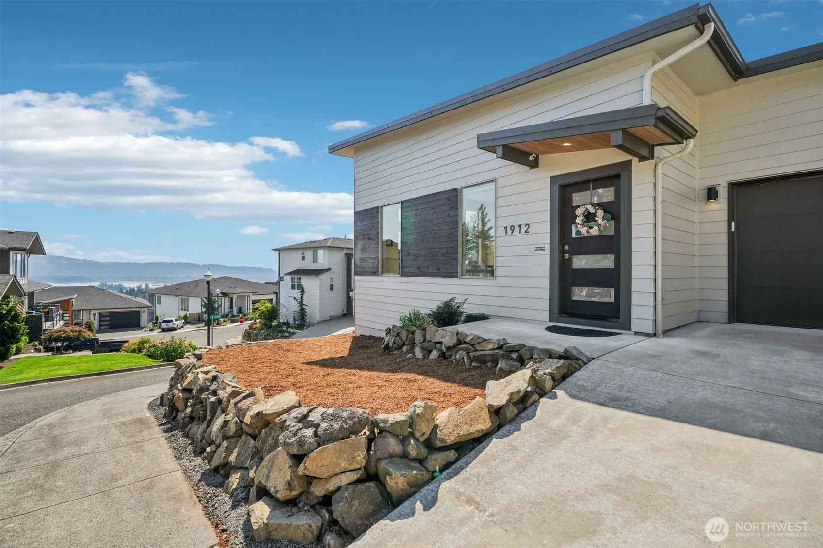 What a Treat! This beautiful home sits up on a hill & provides year-round view of the Columbia River, Mt Hood & City Lights. Open & airy with natural light. Open Floorplan with high ceilings great for gatherings. Kitchen hosts SS Gas Appliances, a large eat island & enjoy the river while washing up! Living/Dining Room combo with huge windows provides abundant room for all your relaxing or entertaining needs & the deck is a sweet spot to enjoy a morning cup of coffee or evening meal gazing out at the river. Owners’ suite features 2 closets, Dual Vanity & Large tiled shower. PLUS the house is serviced by a Tankless Water heater & Mini-splits