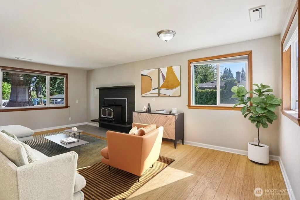 Welcome to this charming, move-in-ready rambler in Shoreline offering 3 bedrooms, a beautifully updated kitchen and bath, stainless steel appliances, bamboo flooring, and a 2-car detached garage. Enjoy the spacious floorplan, plus a bright, expansive yard with a deck and covered patio—perfect for entertaining or gardening. Sitting on a generously sized lot of almost 10,000 sqft, there’s ample parking, room for an RV or boat, and still plenty of space left for your imagination. Conveniently located for an easy commute to Seattle or the Eastside, and just minutes from Shoreline light rail station.