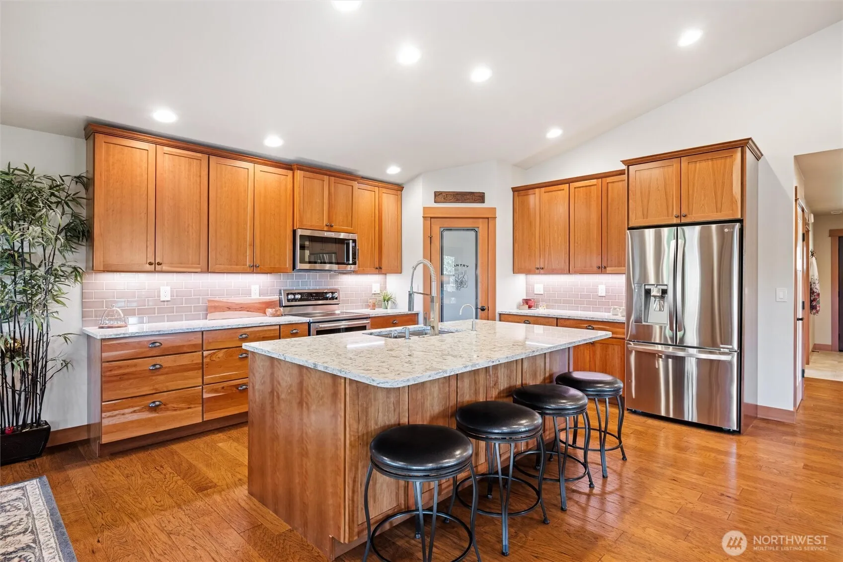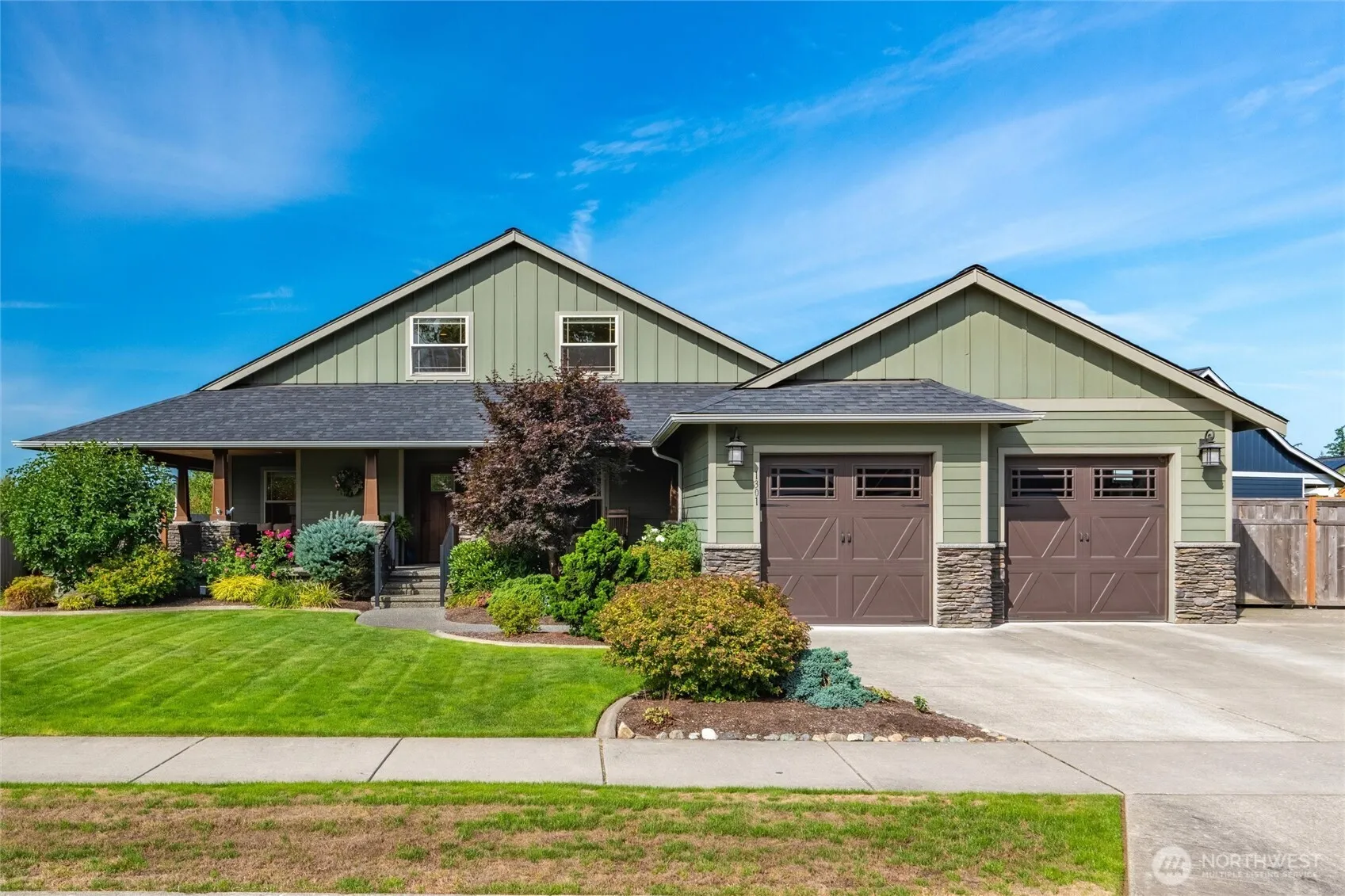 Welcome to Your Craftsman-Style retreat! Tucked away at the end of a quiet street, this 3 bed, 2 bath home (plus bonus room + bath upstairs) offers comfort, style and privacy. Custom built in 2017, the main level features a spacious primary suite, along with two additional bedrooms and a 2nd full bath.  The vaulted Great Room features Hickory engineered hardwood floors, a gourmet kitchen, spacious dining area and a cozy stone fireplace in the living room. French doors open to a gorgeous 640+ sf wraparound porch – perfect for relaxing or entertaining. With abundant natural light, custom touches throughout, a beautifully landscaped and fully fenced yard, this move-in-ready home is a rare find!