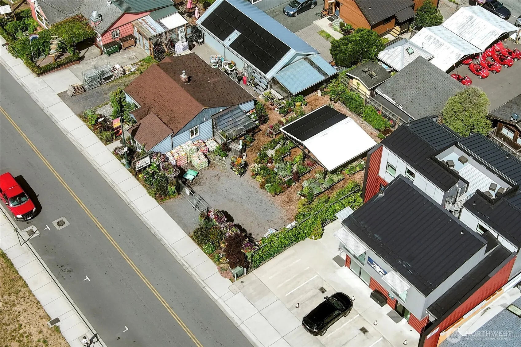CORE Commercial parcel in town offers many options for nightly rentals, restaurant, office, retail, or combo of all! Recently rezoned for more intensive use. Double lot in size. Has private well, sewer and fiber. Original home from 1947 is currently the site of successful busy nursery. New solar installed in detached garage conversion building. Nursery Business available for an additional $150,000.