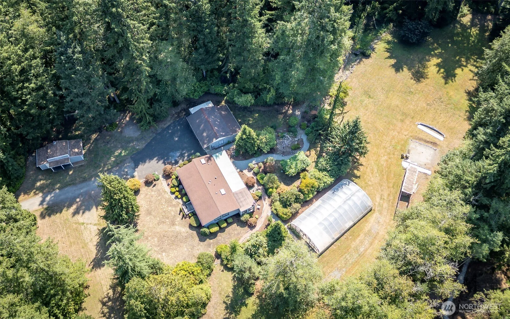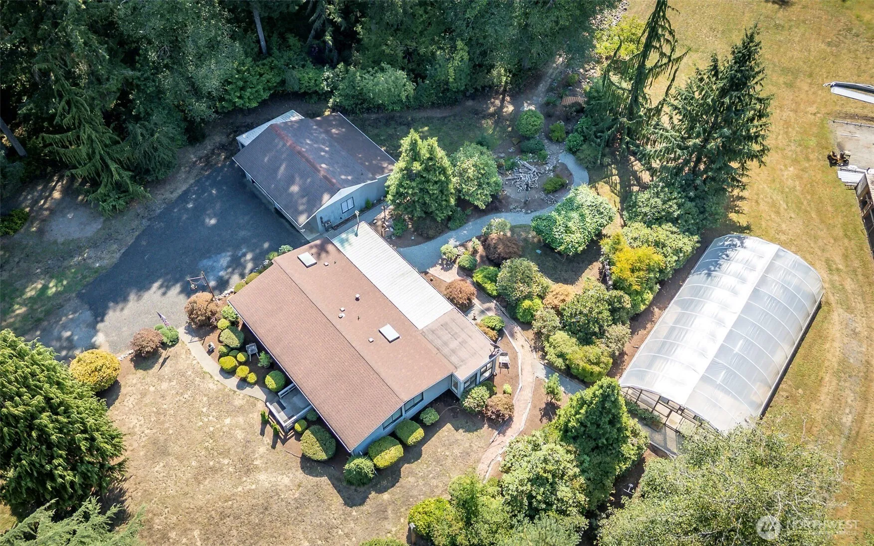 For 1st time in 36 years, acreage opportunity on dead-end street, blanketed w/ privacy. Turnkey, immaculate one-level home, skylights aglow, den/3rd bed, soaking tub, walk-in shower & 2nd full bath off utility room, convenient kitchen sprawling into a covered patio & enclosed porch to unwind. Be lulled as you follow trickling stream, meandering thru manicured plants, azaleas & rhododendrons, begging to host to garden parties! Walk or drive around to pasture, enclosed by lush woods to feed your chickens in coop & harvest from the massive greenhouse. Outbuildings are sprinkled throughout the property- detached garage w/ separate studio & carport, well house w/ new gear, a generous secondary workshop for year-round projects. Truly stunning!