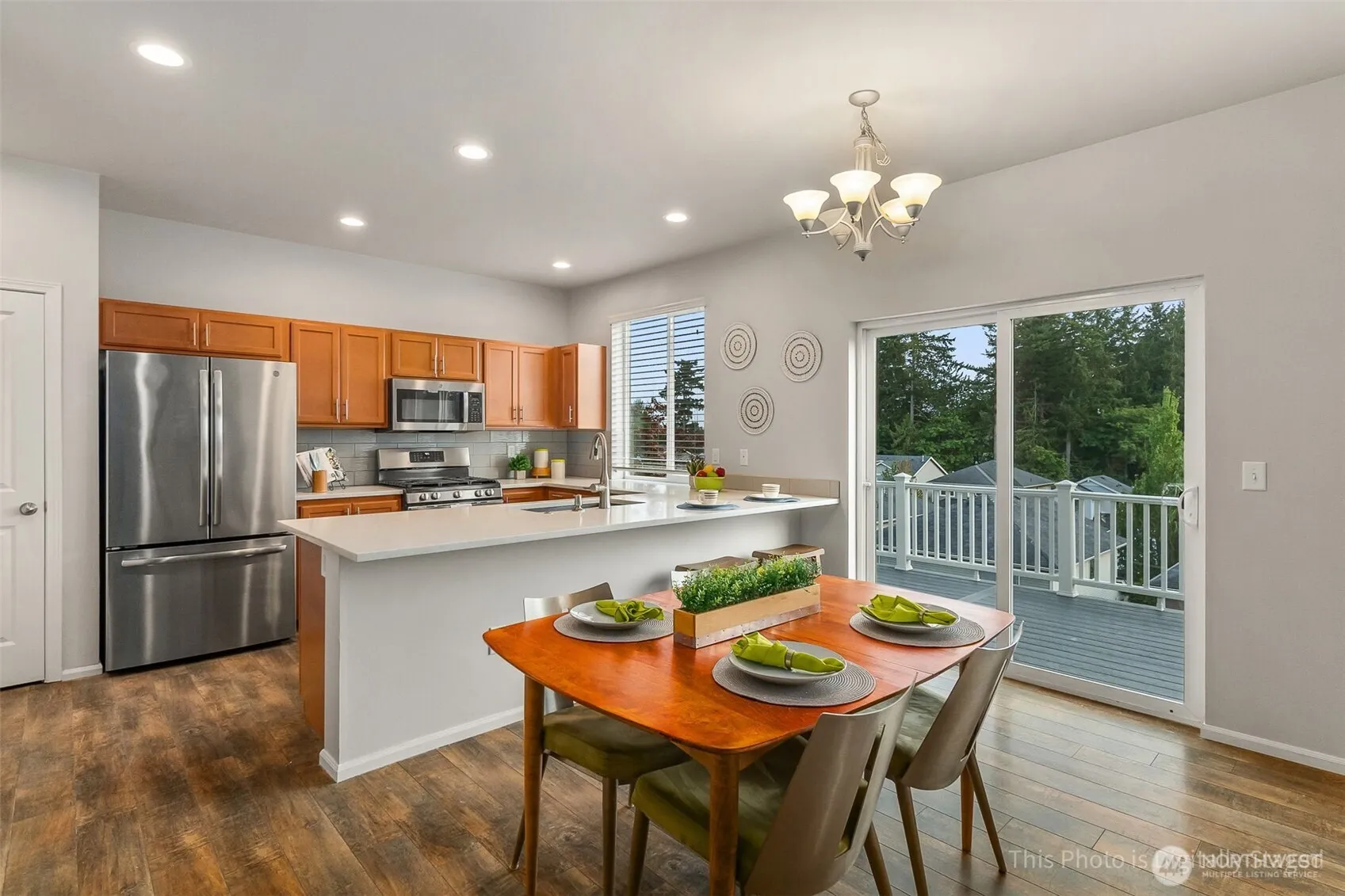 Enjoy life on popular Tumwater Hill in this thoughtfully updated home. The owner has reimagined the easy care rear yard with a generous, sun-drenched deck, perfect for entertaining or relaxing. The back of the lot provides open space for great light. Inside, you’ll find durable LVP flooring throughout both levels. Beautifully updated kitchen: quartz counters, new fixtures and sink. Large primary with ensuite 5 piece bath, walk in closet. Bedrooms feature the same sleek flooring, and added A/C keeps things comfortable year-round. Vinyl siding makes exterior upkeep a breeze. Conveniently close to I-5, Tumwater schools, nearby parks, and the vibrant new Craft District for dining, drinks, and local shopping. Just move in and enjoy!