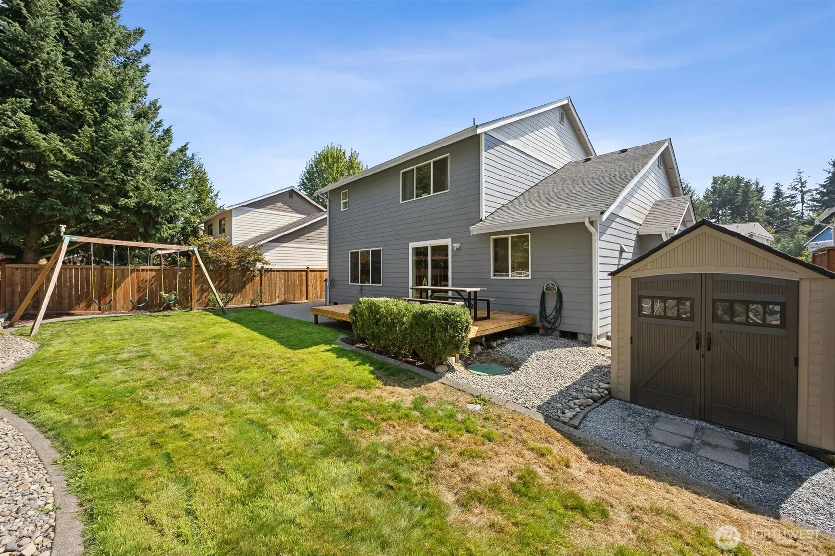 Beautiful spacious 4 bdrm, 2.5 bath, 2172 sq ft home in the Buttes Community! This meticulously kept home offers fenced bkyd w/new deck. Secluded backyard w/greenbelt behind home, outdoor spinkler system, firepit area, garden boxes & 3-car wide drvwy. Newer ext paint 2020, A/C 2021, water heater 2019, Roof 2024. New furnace, carpet, oven & interior paint throughout in 2025. Home offers a large open living room & 2 dining areas. SS appliances & hardwood floors accent the large open concept kitchen w/island & family rm w/gas fireplace. Upstairs offer’s a large primary bdrm w/5-piece bthrm, & lrg soaker tub W/wlk-in closet. Home comes with xtra large washer & dryer. This home is in a NON-RTA tax area, saving you a lot of $ on vehicle tabs.