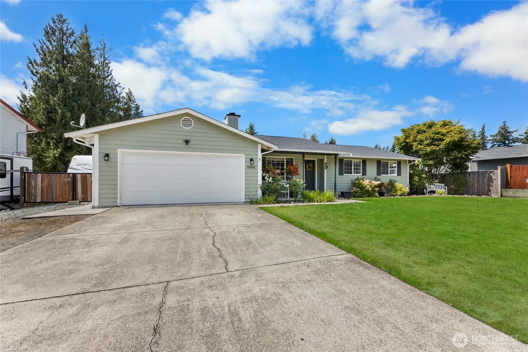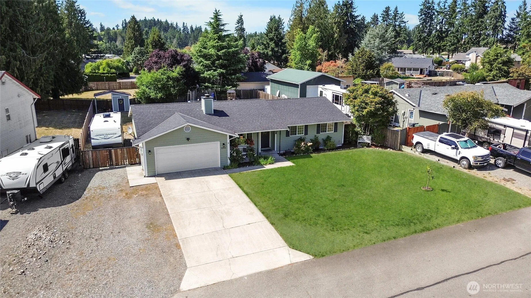One story living, located in a small one street community on a dead end street. Beautiful 3 bedroom 2 bathroom home on a large .34 acre lot fully fenced. Oversized covered 15×30 backyard deck perfect for all year entertaining. Lots of parking including, 2 car garage, RV parking & backyard shed for extra storage. Open concept layout between family rm, dining rm, living rm and kitchen. Adorable kitchen with pantry and all kitchen appliances stay. Cozy up to the wood burning fireplace in the front living rm. Newer laminate wood flooring throughout. Roof is about 7 years old & crawl space has been cleaned, sealed up & new vapor barrier installed. Great location to schools, amenities and JBLM base.