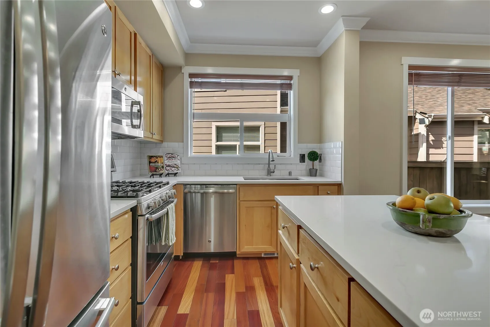 A gardener’s & traveler’s delight, this impeccably maintained townhome in The Gardens at Valley Meadows is hard to find. Main floor living & sleeping make life easy. Three more large bedrooms & full bath upstairs offer comfort & creative options. Updated kitchen gazes out on the colorful garden through large bright windows. All major systems & appliances have been replaced, offering peace of mind while home or away. HOA maintained exterior paint, roof, & yard. Roof replaced in 2024. Secure RV lot for trailer & boats, plus access to miles of regional trails for walking, running & cycling. A dog’s heaven too. Shared park with Valley Meadows adds opportunity to meet the neighbors. Close to schools & amenities & quick access to Hwy 169 & 18.
