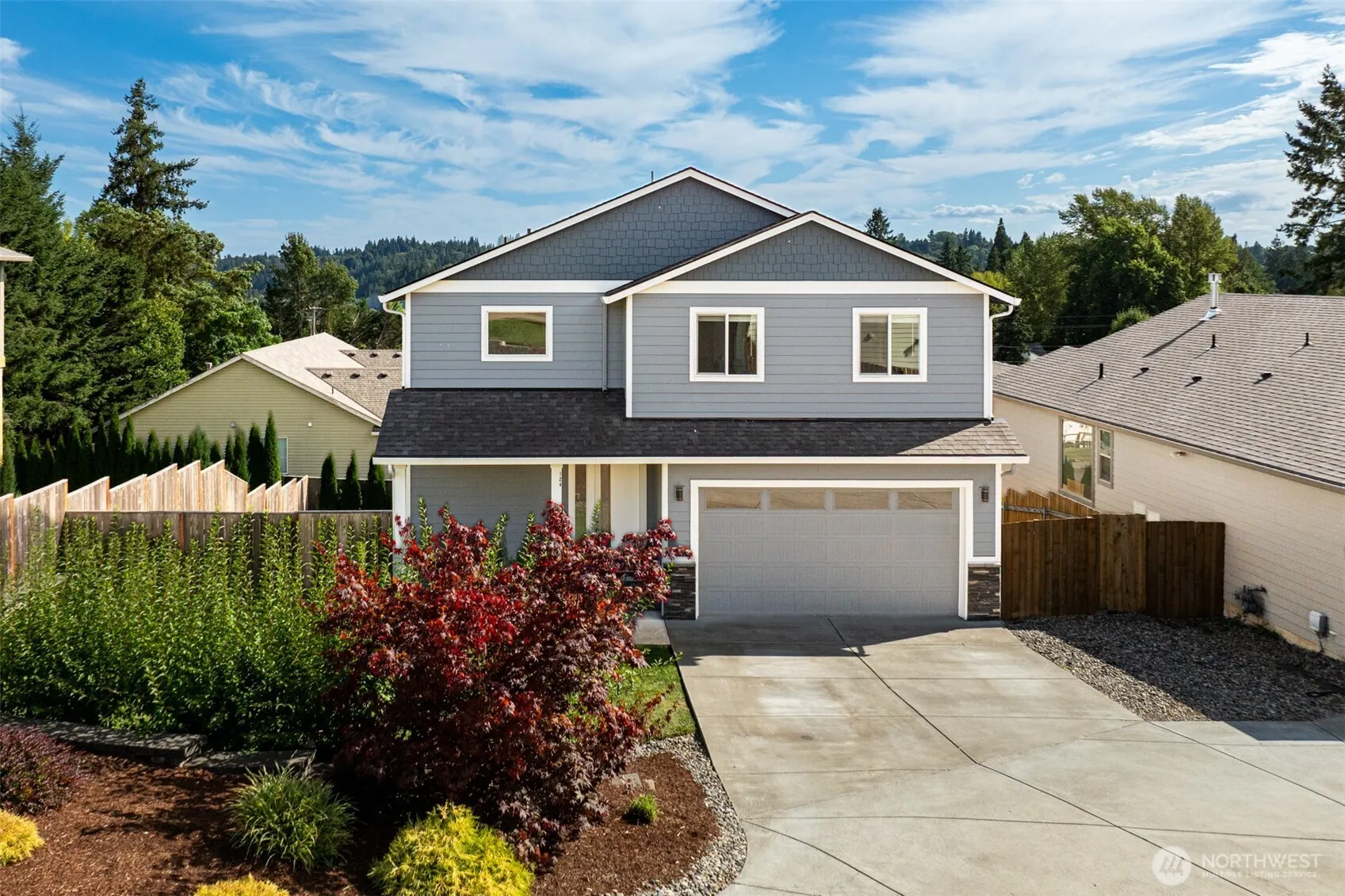 This home is calling your name! Well appointed and stylish 4 bedroom, 2.5 bath home in picturesque La Center, WA. Located in a wonderful neighborhood this home features a main floor with LVP floors throughout, beautiful kitchen with stainless steel, gas appliances, an open floor plan and a deck that overlooks a large backyard. Upstairs you will find a large primary suite, with walk in closet along with 3 other bedrooms. This is your chance to own a beautiful home in an incredible community!