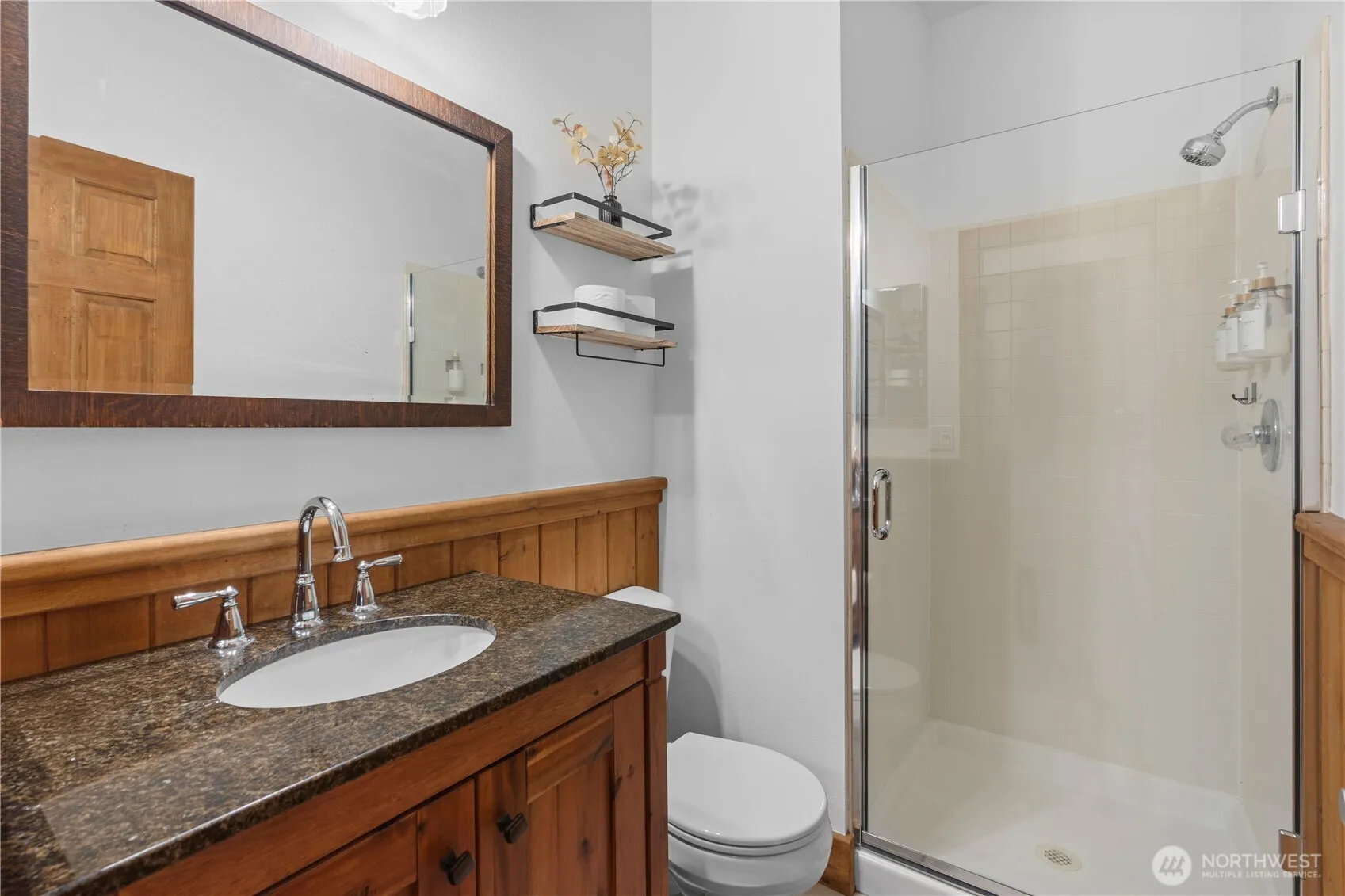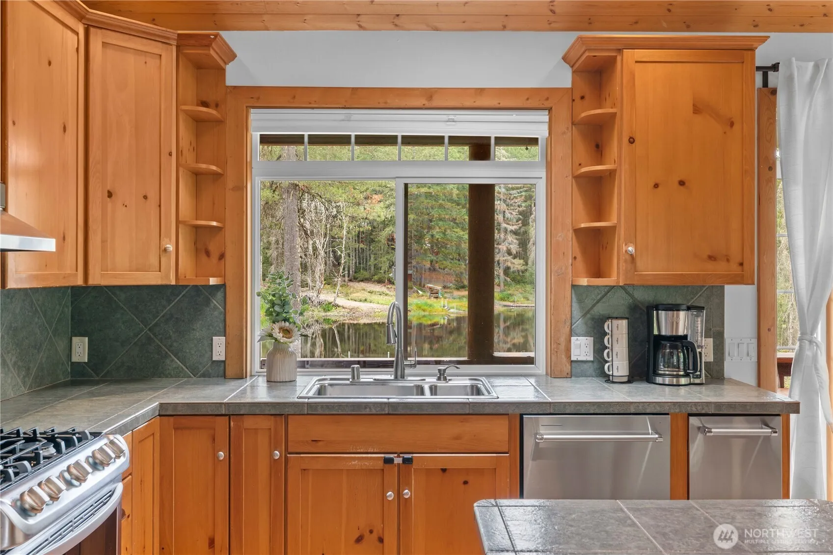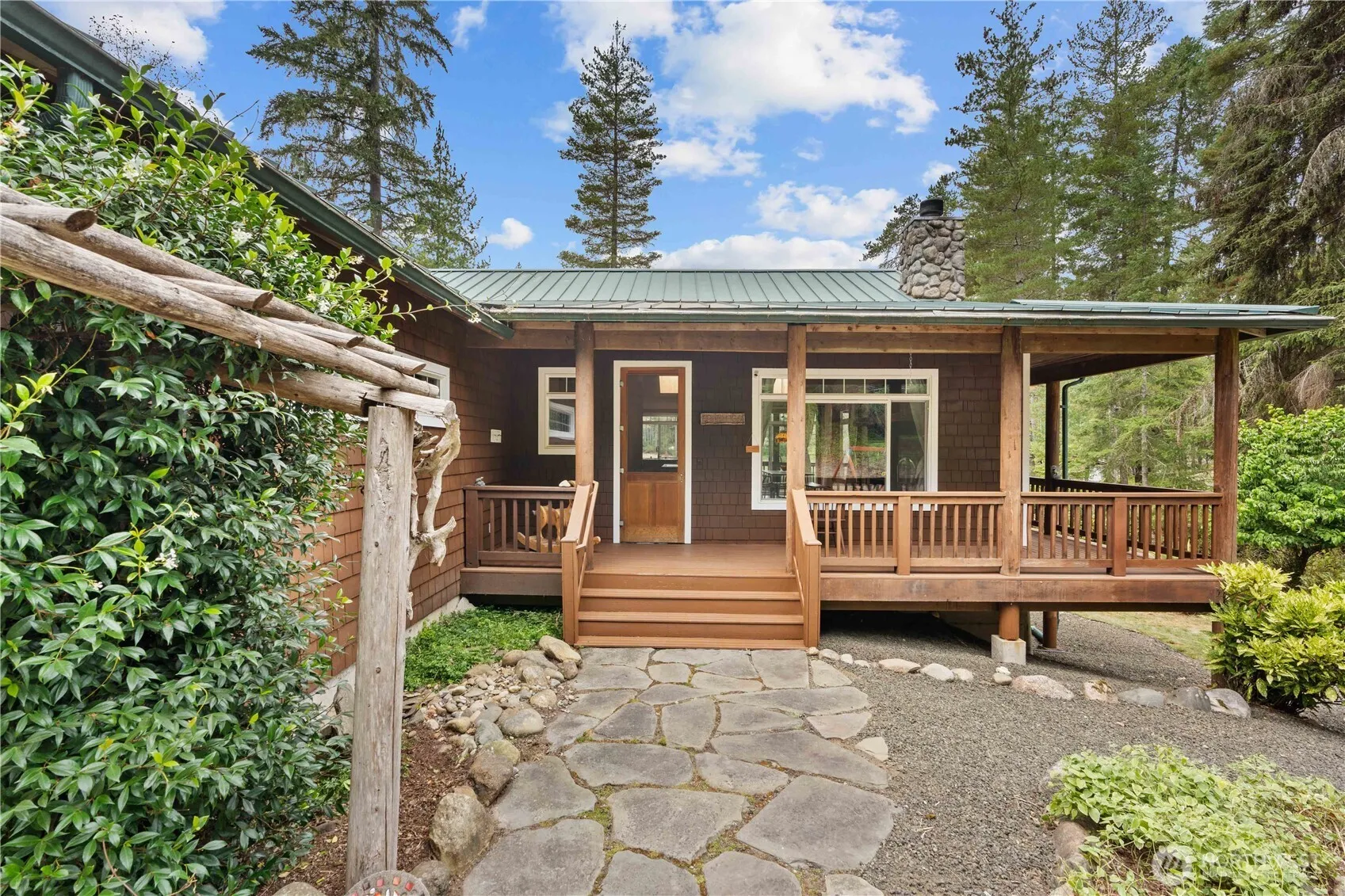 Embrace idyllic lakefront living on the serene shores of Erickson Lake, where tranquility meets timeless beauty. This custom Herb Chaffey home features vaulted ceilings, open layout, and seamless indoor-outdoor flow to a wraparound deck with west-facing water views. Cast a line, launch a kayak, or paddleboard from your private dock on this 18-acre lake. Unwind in the primary suite w/ sliding glass door access to the deck, featuring a 220-v plug, ready for a hot tub. Set on 2.4 acres w/ two outbuildings, a greenhouse, w/ lots of room to garden. This property blends comfort and self-sufficiency. Abundant storage in the 3-car garage and a Gentran connection for easy generator hook-up. A true retreat, just 35 minutes from the Bremerton ferry.