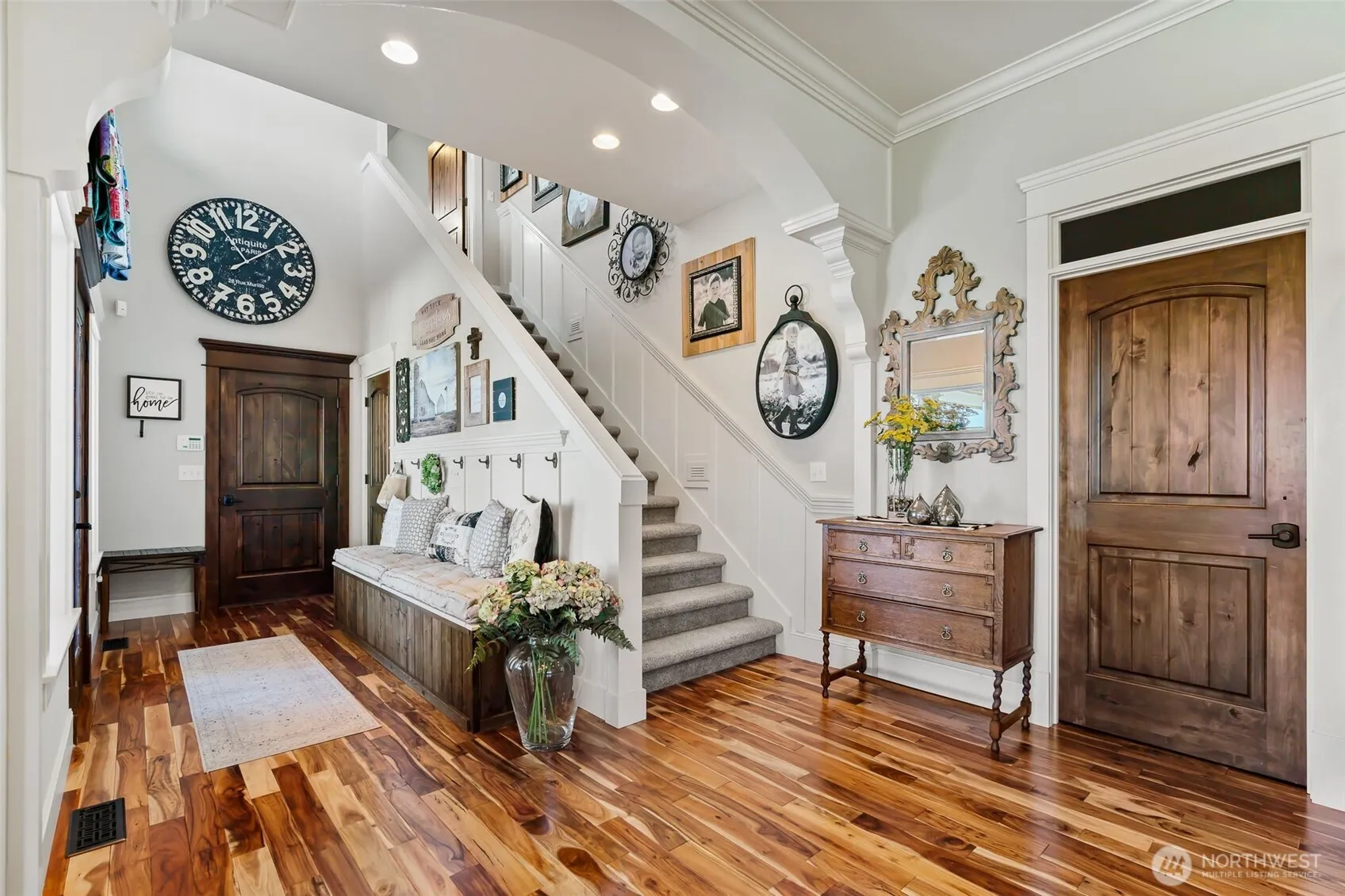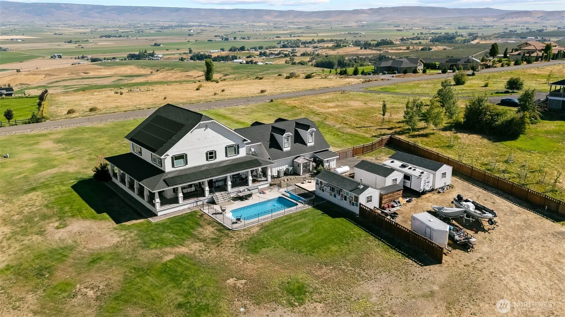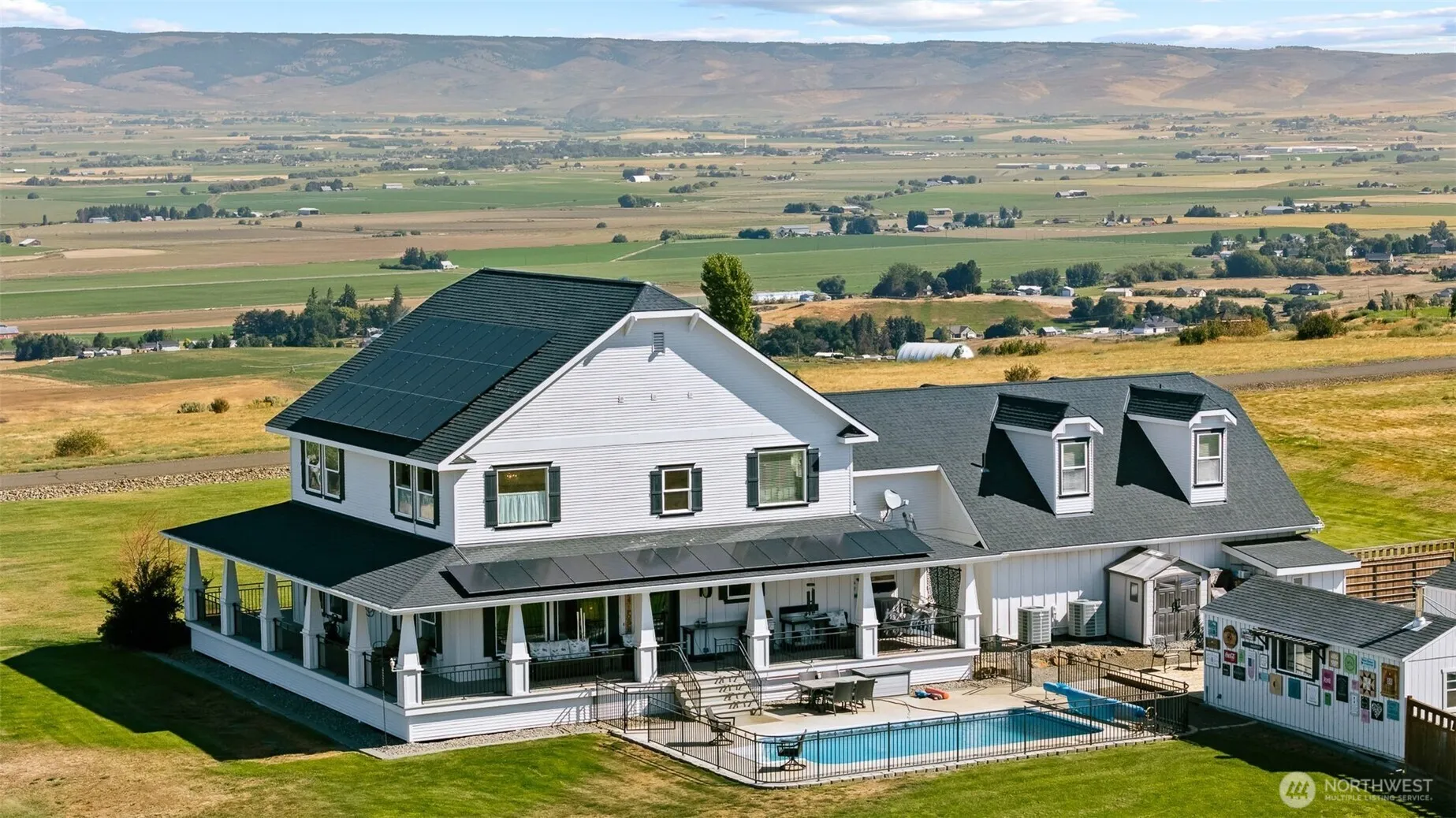 Step into luxury living w/ this stunning 4-bed, 3.5-bath custom home w/ breathtaking valley views & high-end finishes throughout. Acacia hardwood floors, a beautiful coffered ceiling & a show-stopping fireplace create an inviting & elegant main living space. The large chef’s kitchen is designed to impress, featuring quartz countertops & large walk-in pantry. The primary suite offers a peaceful retreat w/ a spa-like bathroom, soaking tub, & an expansive walk-in closet. Huge 4th bedroom/bonus room above the garage. Step outside to your own backyard oasis complete w/ an 11,000-gallon chlorine pool, custom wrought iron railings, irrigation, & built-in speakers inside & out. RV parking & security system. 63 solar panels keep energy costs down!