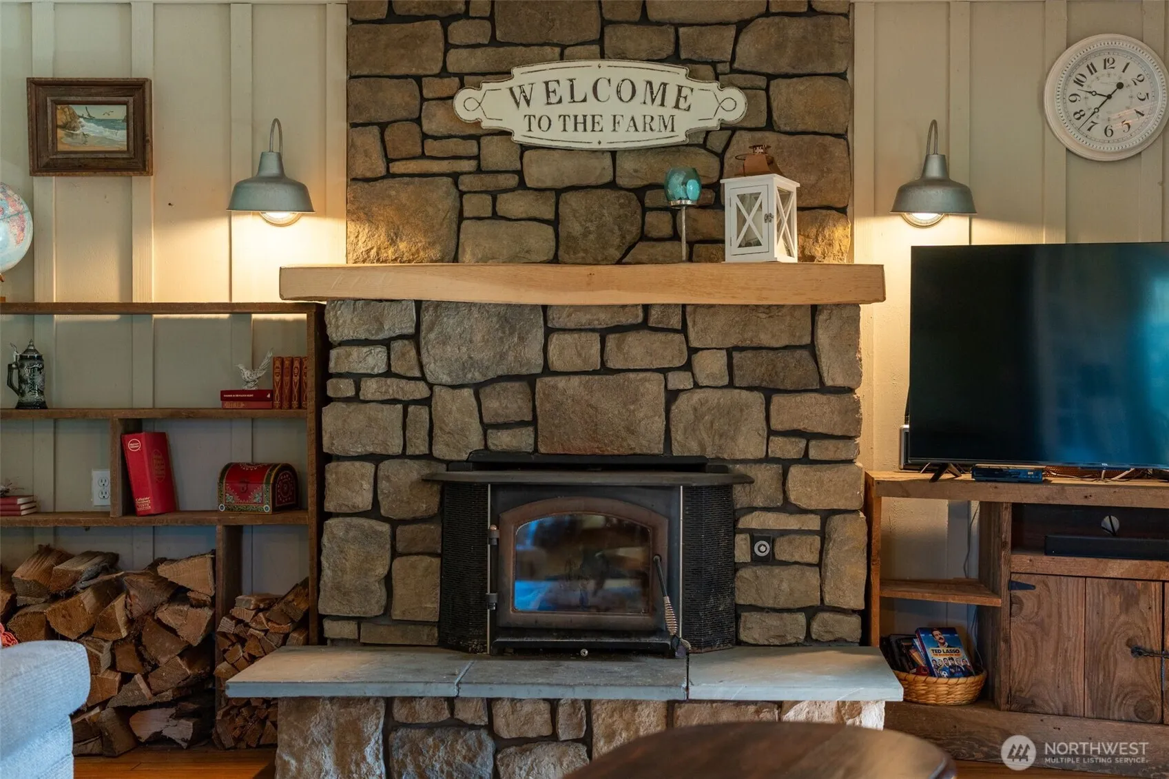 Charm and Character, this 4-bedroom, 2.1-bath home on a flat usable acre lot offers a spacious feel. A new kitchen has quartz countertops, a farmhouse sink, a subway tile backsplash & new SS appliances. Bamboo flooring unifies the main living areas. The sunroom has tall bookcases and a sliding ladder. The inviting living room has a wood stove. A large primary bedroom w/built-in bookshelves, French doors, a walk-in closet, and a bath with a big tile shower. A 2nd bedroom with private two-piece bathroom. An updated hall bath w/new tile shower surround, commode, and vanity. A 2000+ sqft shop w/200-amp service with several workbenches, loft storage. Cross-fenced with a gated entrance has garden and fruit trees.
