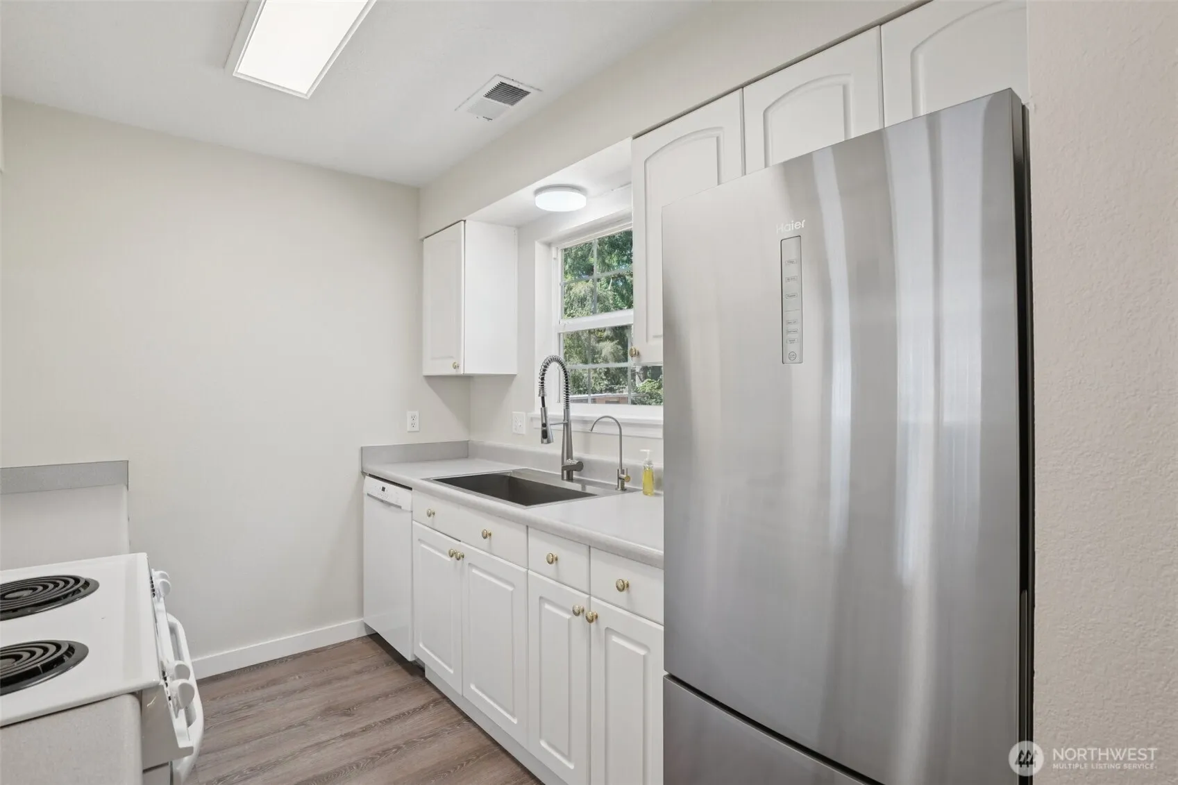 Charming country cottage on over 5 acres in a park-like setting! Enjoy fruit trees, fire pit, chicken coop, and seasonal creek on this private corner lot with lots of room to roam. The home has 3 bedrooms, 1 bath (potential for a second bathroom), one flex room with a skylight that could be an office, two living areas, galley kitchen, pantry, and adjacent dining area. With a new roof in 2022, new HVAC in 2021, and fresh paint inside and out, this home is move-in ready. Enjoy this home as is, or use it as a comfortable residence while you build your dream home.