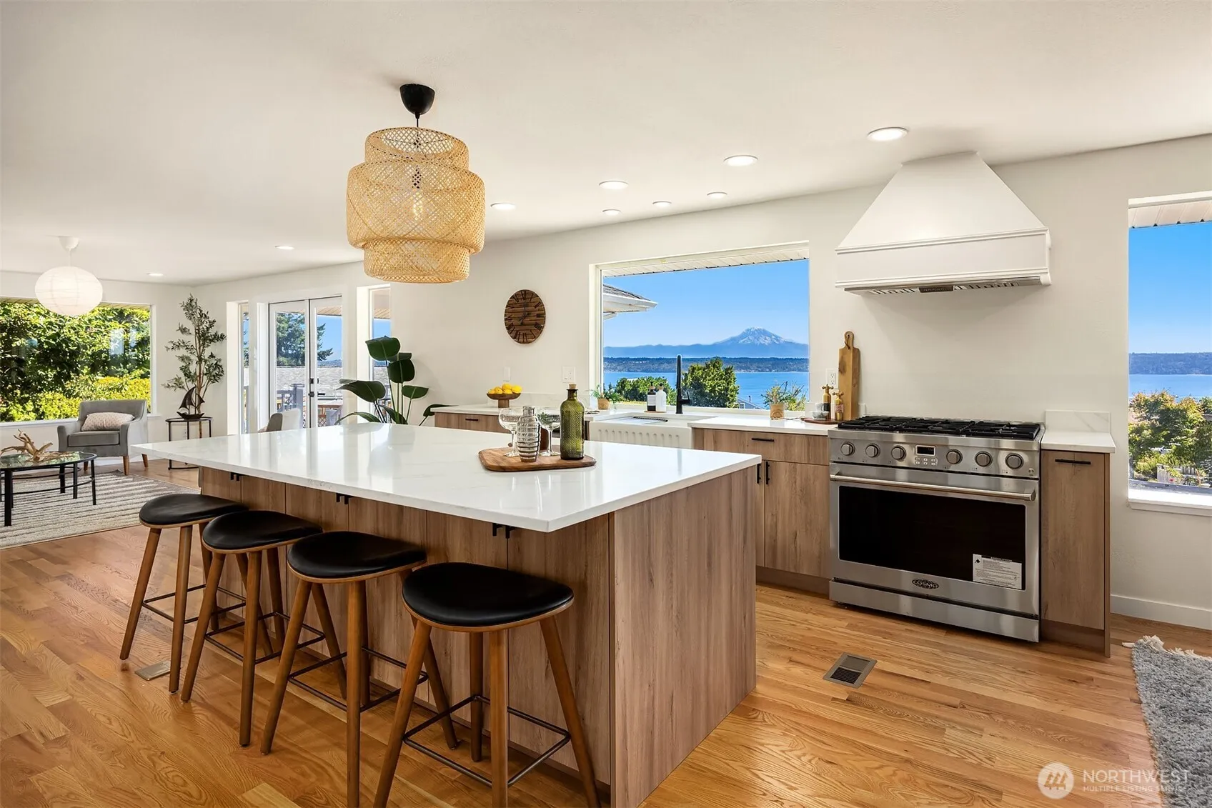 Here’s the perfect 3 bedroom + home office home on beautiful Vashon! Fully renovated, light-filled, with stunning Mount Rainier and Puget Sound views. Open-concept design features a large kitchen with quartz countertops, grand island, 36” range, and stainless-steel appliances. Spacious living room opens to a South-facing deck—perfect for entertaining both indoors and out. New hardwood floors throughout. Fully updated bathrooms. Oversized 2-car garage. Generator provides convenience and peace of mind. Situated in a peaceful cul-de-sac of desirable Gold Beach community which offers a waterfront clubhouse with pool, sport court and large entertaining area. Move-in ready—just unpack and enjoy!