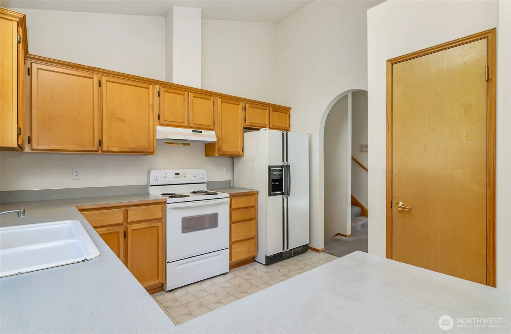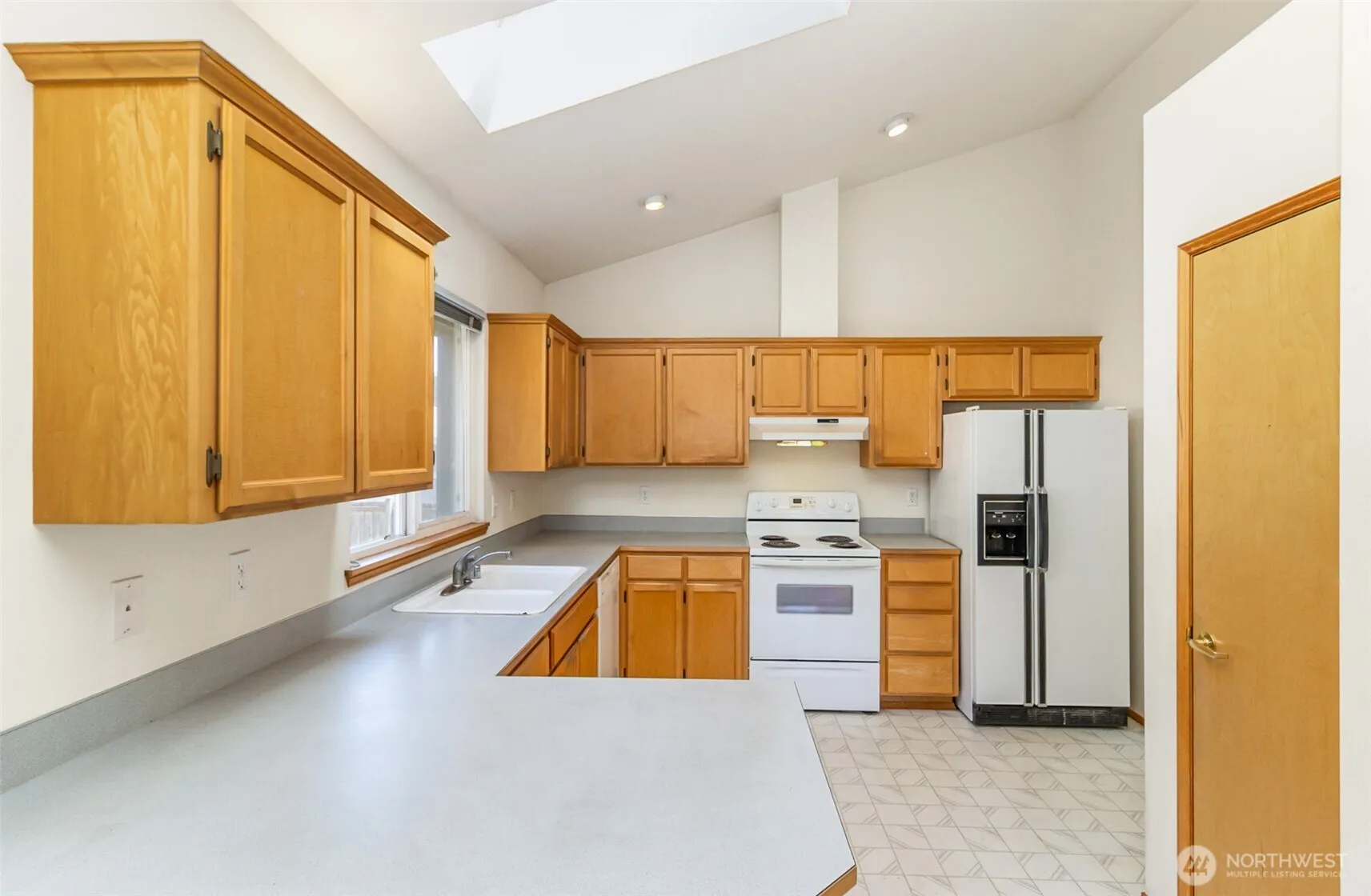 Enter into a living room with vaulted ceilings & large windows allowing all the sunshine in. Place your dining room table to enjoy the views into the fully fenced backyard with short walk to City Disc Golf and community wooded area. Entertain or BBQ year-round on the outdoor space including a deck.. Use the storage in the backyard shed for all your lawn & yard tools. Unwind in the cozy family room at the end of the day. The second floor is where you’ll find all 3 bedrooms & 2.5 bathrooms, one of them attached to the primary bedroom with vaulted ceilings for an open airy feel. Close to restaurants & shopping.
