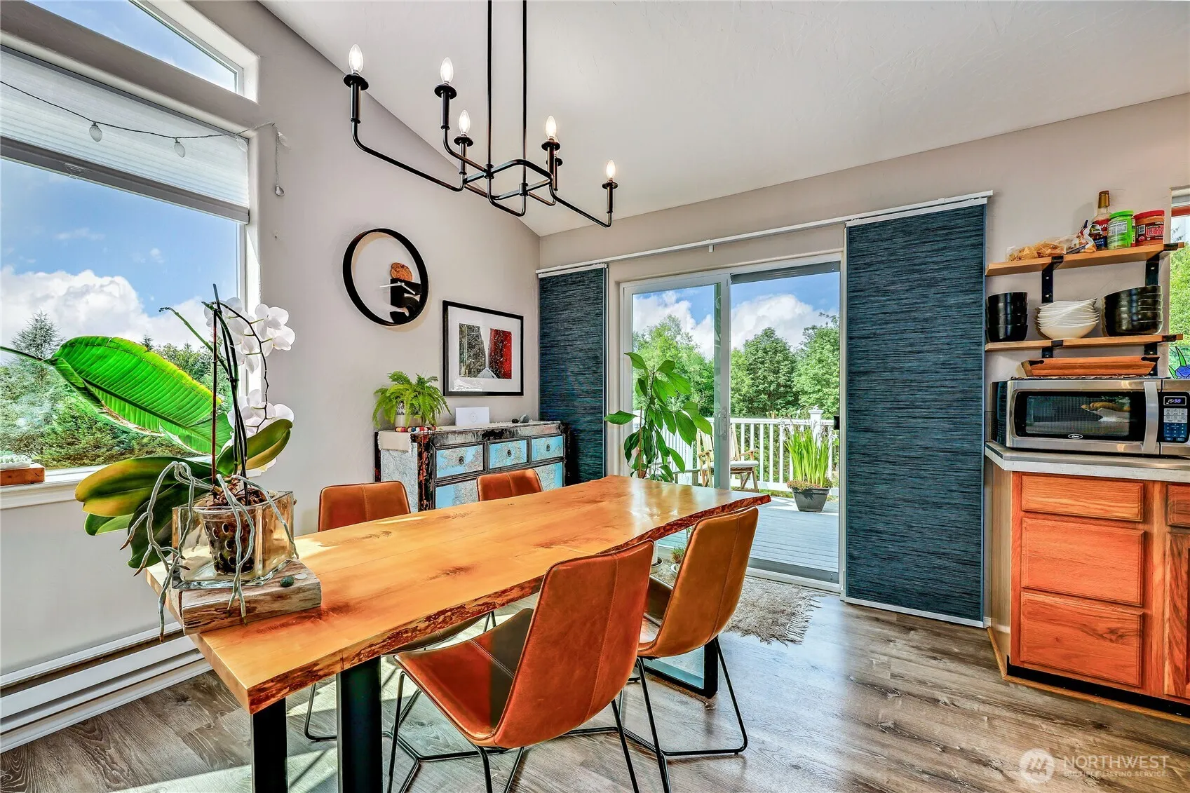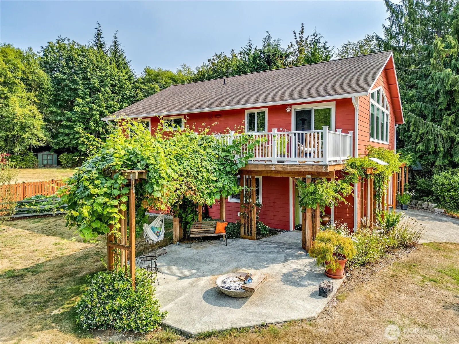 Enter Natures Garden with beautiful Olympic Mtn view from picture windows or upper deck. Self-sustainable designed Solar panel system, car charger. Large windows open up the living, dining, and kitchen area with its vaulted ceiling. Free standing wood fireplace, water resistant luxury vinyl plank flooring, plush carpet. Primary bedrm with walk in closest, full bathrm. Another full bath and guest/office space. Two more bedrms, half bath and family room on lower floor. Take a hike on this 4.32 acres to the south part of the property where you will find the perfect location, to sit/camp and enjoy the sounds of the creek, surrounded by nature. A little orchard, herb garden, fenced garden and the chicken coop for the self-sustainable scheme.