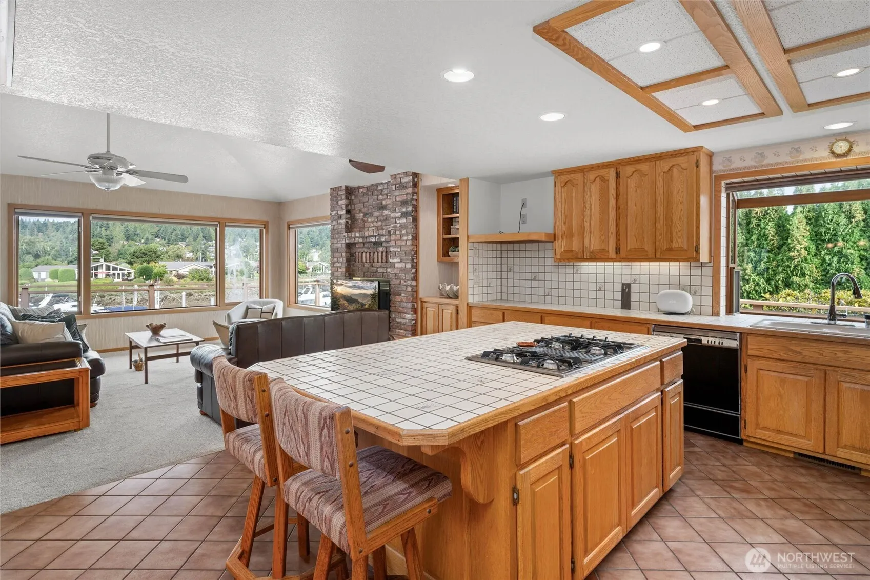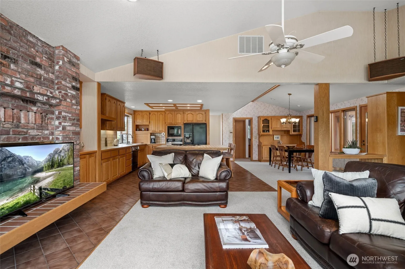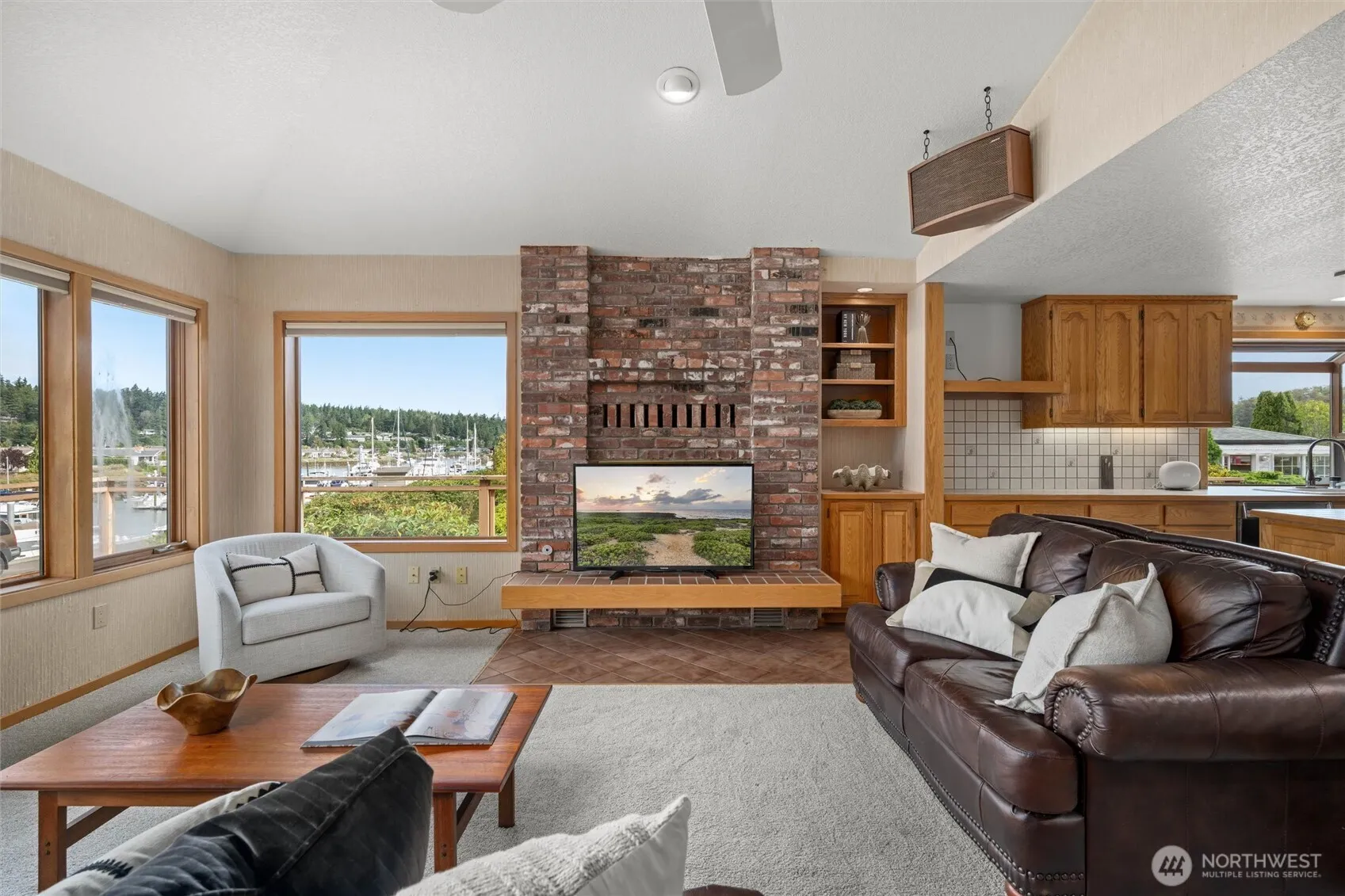 Live the quintessential La Conner lifestyle in this expansive water-view home. The open floorplan captures sweeping views of the marina from the living area & the channel from the primary bdrm & patio. Enjoy indoor-outdoor living w/ the spacious front deck or the sun drenched back seating area. This home is ideal for entertaining, featuring a large kitchen & dining room. Expansive windows frame the views & fill the home with natural light. Home features a generous garage + work bench/shop space in basement. Basement is also plumbed & ready for a MIL suite with its own w/d. Recent updates include a new 50 year metal roof & new carpet. Community features: tennis, pickleball, b-ball courts, clubhouse, golf course, trails, playground & more!