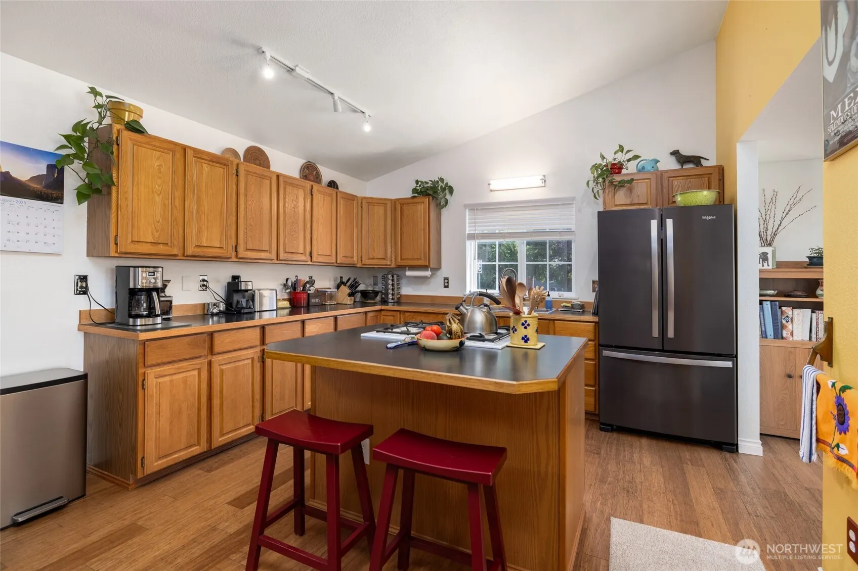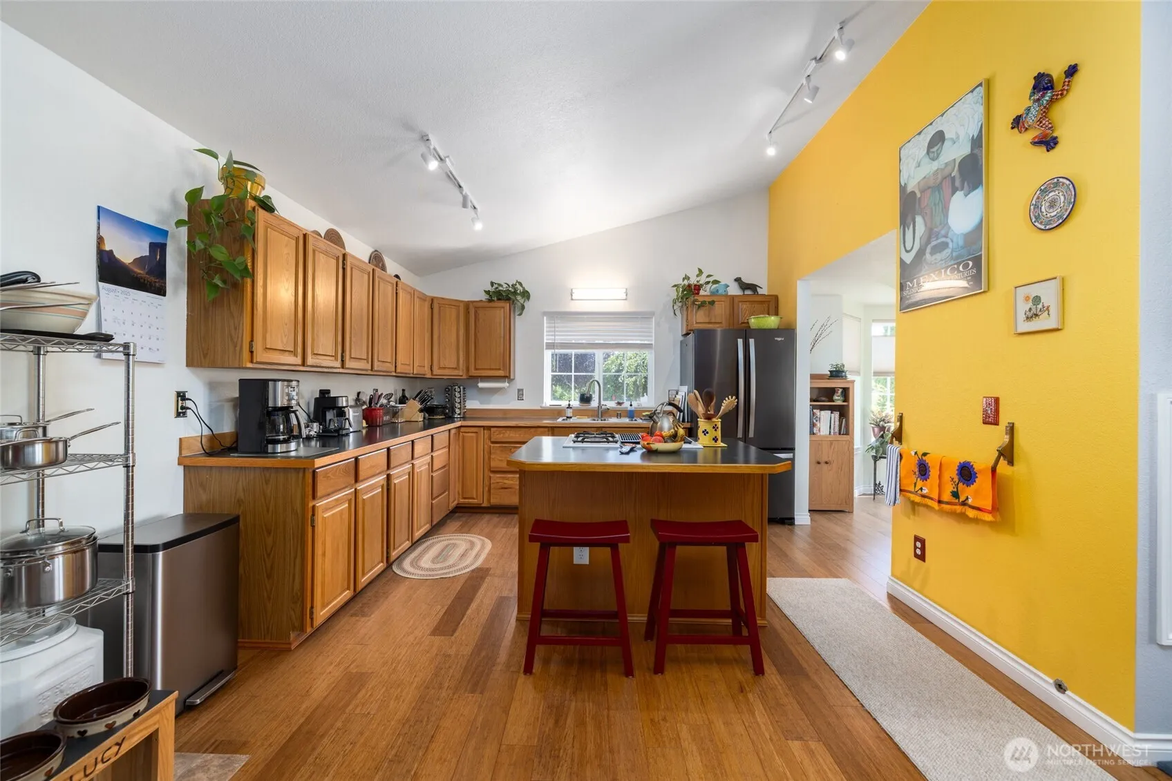 Move-in ready Country Club area rambler on large, .27 acre corner lot w/room for RV/boat parking. This cute & tidy 3 bed/2 bath single-level home offers great living space and nice-sized bedrooms. Step in through the tiled entry to vaulted ceilings in the living area. Spacious kitchen features a center island, real wood cabinetry. Coffered ceiling in dining room. Living room w/gas fireplace. Primary suite has private, 5 piece bath, double vanity, and walk-in closet. Two guest rooms share a full bath. Outside, a fully fenced yard with mature landscaping and big storage shed await. Attached 2 car garage is finished and heated. Natural gas high-efficiency furnace & AC installed 2022 & regularly maintained.