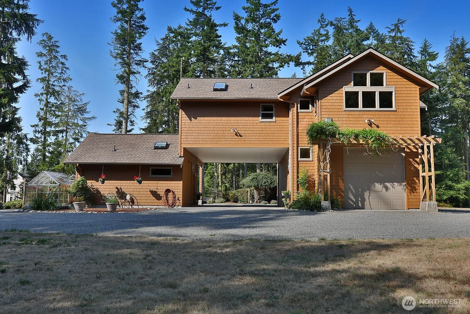 Discover a serene Whidbey Island retreat just moments from Greenbank Farm, off-leash trails, shops and the beloved Greenbank Pantry. This custom-built home sits on 5 private acres with meandering trails, mature landscaping and a sense of tranquility. The expansive garage offers pass-through doors & soaring ceilings, perfect for RVs/boats, storage or hobby projects. Inside, enjoy timeless craftsmanship with warm vertical grain fir trim, vaulted ceilings, a sunroom filled with natural light and a deck ideal for morning coffee or sunset wine. A covered breezeway connects to a private casita with en-suite bath and plumbed for kitchenette. Centrally located between South Whidbey and Coupeville, this property offers both privacy and convenience.