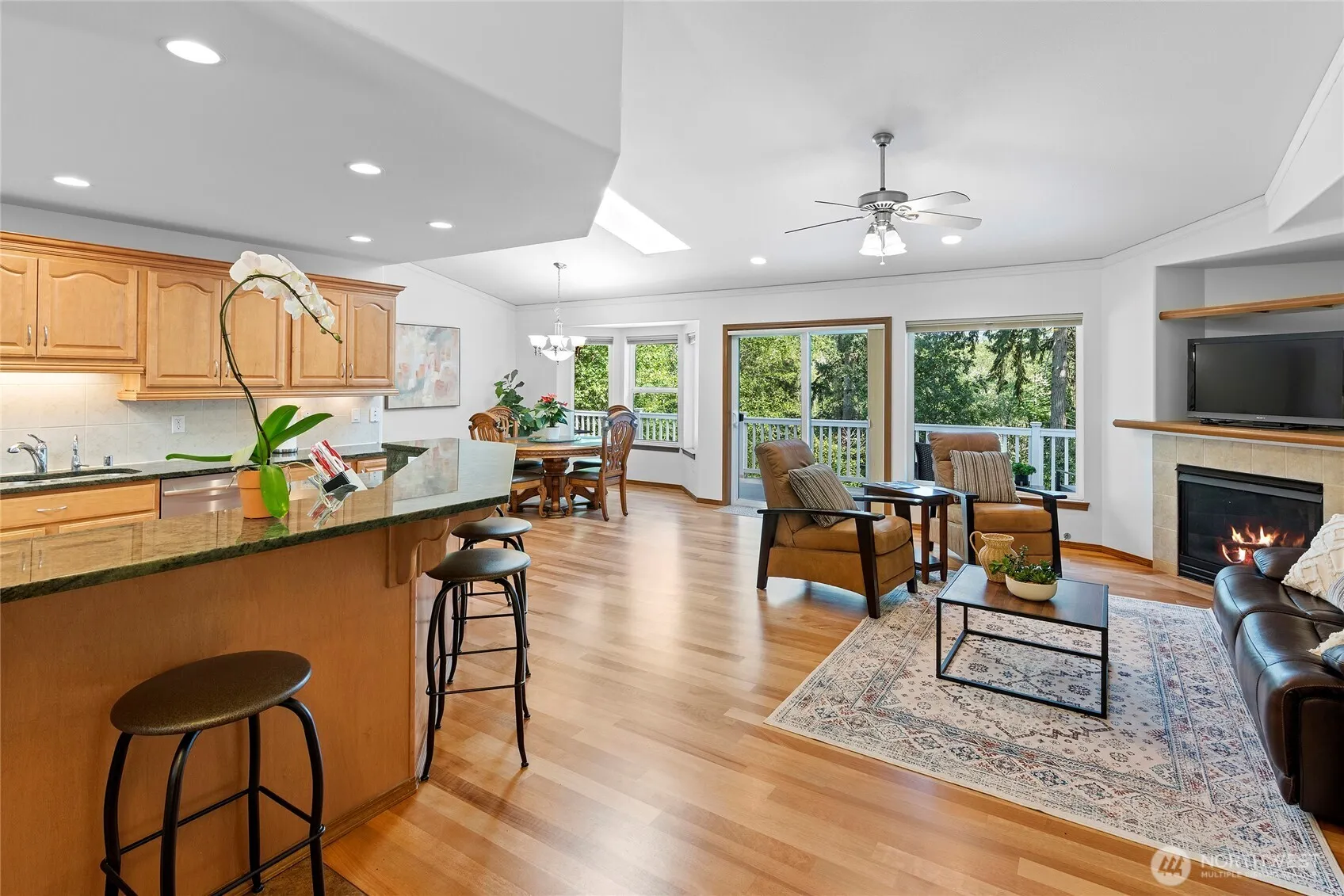 Designed for Main Floor Living! Many extra wide doorways. New in 2025: roof, Gaco decking, exterior and interior paint, refinished wood floors, heating and cooling serviced, LP fireplace serviced, septic serviced, and up/down draw honeycomb window shades. Main floor open floorplan with LP fireplace, primary bedroom & bath plus 2 bedrooms, full bath, and utility room. Huge lower-level rec room with wet bar, woodstove, large 4th bedroom/office, and insulated workshop/garage bay with Turfstone paver access. Large deck with LP BBQ valve, and stairs and ramp access. Country setting with salmon stream, nearby public beach accesses, and local conveniences. Not far from schools, downtown Winslow and the Seattle ferry. On commuter bus route.