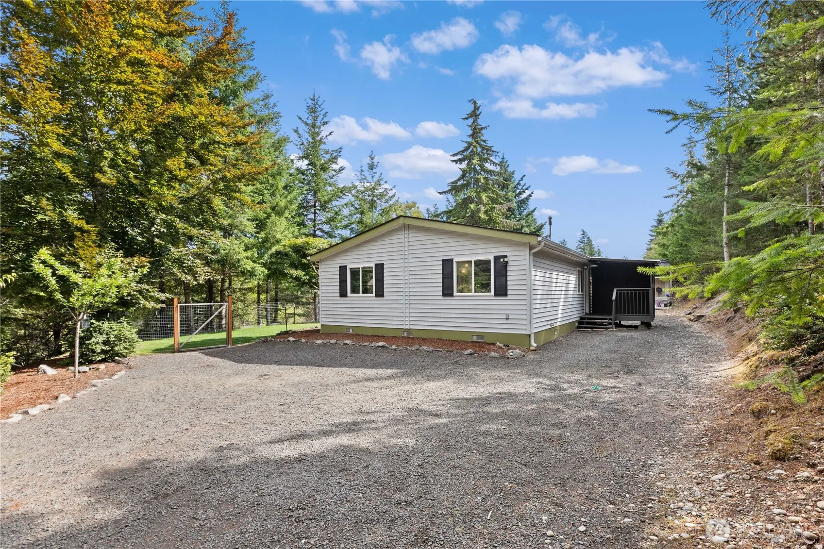 This beautifully upgraded manufactured home boasts over $80,000 in recent improvements, offering a blend of comfort and modern style. The interior features stainless steel appliances, hardwood flooring, and tile throughout—no carpet! Enjoy the spacious, serene backyard with exceptional privacy, perfect for relaxing or entertaining. Ideally located just minutes from Hood Canal, yet it feels like you’re miles away from the hustle and bustle. Don’t miss this rare opportunity for secluded living with modern upgrades!