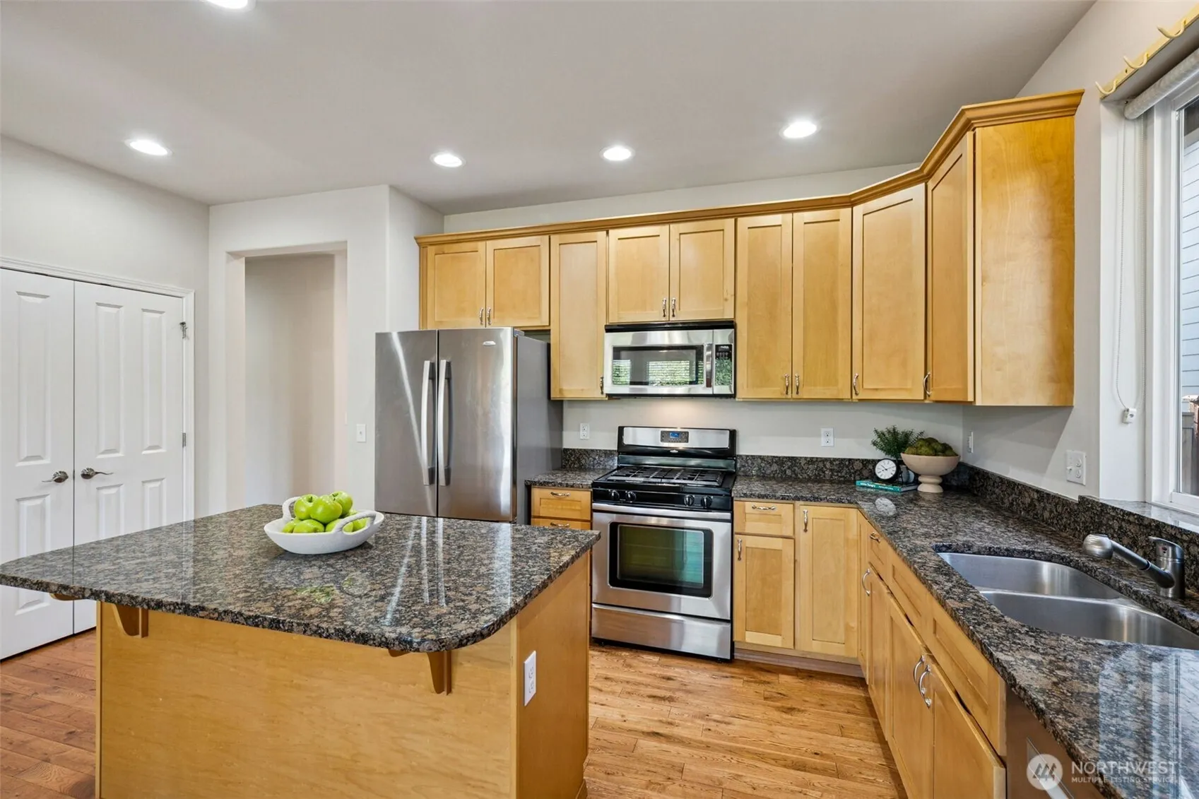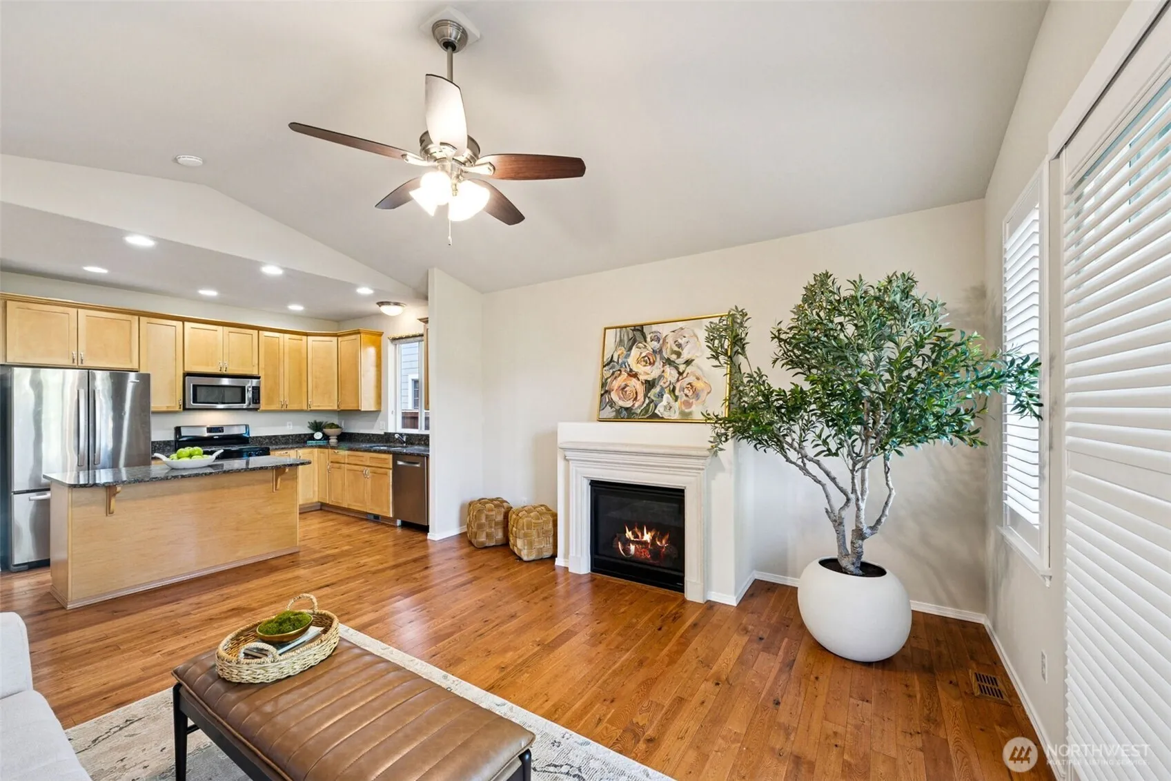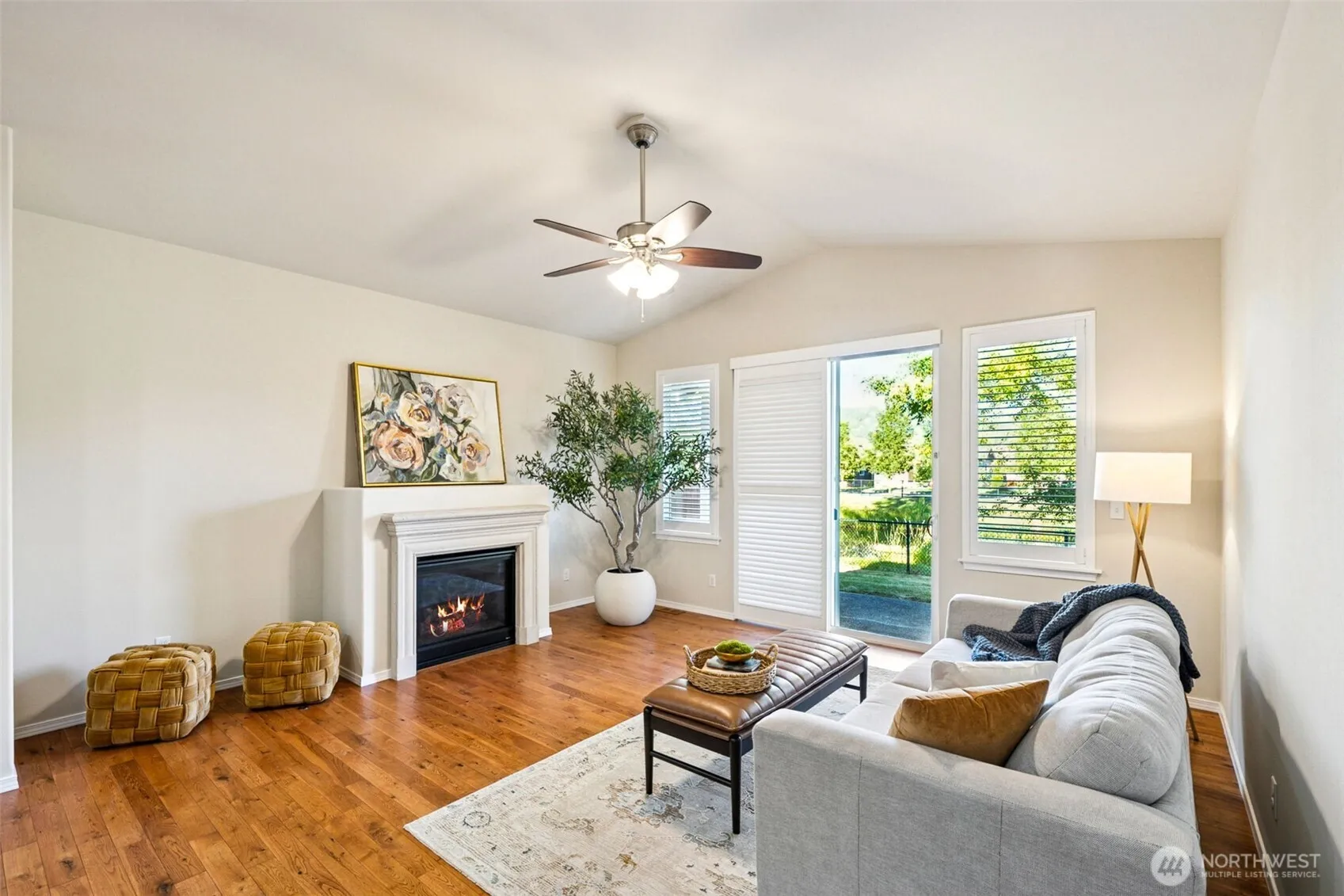 ASSUMABLE LOAN balance at 3.25% – a major savings! And, count them, one, two, three bedrooms, EACH w/ a dedicated full bath. Just think of the possibility! Privacy for guests, multi-gen living or an excellent house-hacking opportunity. Quality finishes w/ high ceilings, quality woodwork, plantation shutters, hardwood flooring & custom storage solutions, to name a few. Gourmet kitchen features granite countertops & a center island. Great Room style living w/ a lovely gas fireplace. Covered back patio takes in the beautiful scenery w/ a backyard pond offering privacy, bird watching & Mountain views. Grand primary suite w/ 5-piece bath & walk-in closet. Second primary suite is icing on the cake! Newer AC unit. Fresh interior & exterior paint.